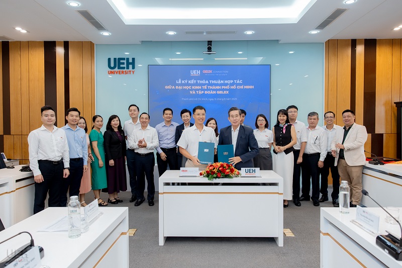 Sáng 15/8/2025, Đại học Kinh tế Thành phố Hồ Chí Minh (UEH) và Tập đoàn GELEX đã chính thức ký kết Thỏa thuận Hợp tác (MOU), đánh dấu việc thiết lập quan hệ đối tác chiến lược toàn diện giữa hai bên. Thỏa thuận này mở ra những cơ hội hợp tác sâu rộng, tạo điều kiện để hai đơn vị phát huy tối đa thế mạnh, chia sẻ nguồn lực và cùng kiến tạo các giá trị bền vững, đóng góp thiết thực cho sự phát triển của cộng đồng.