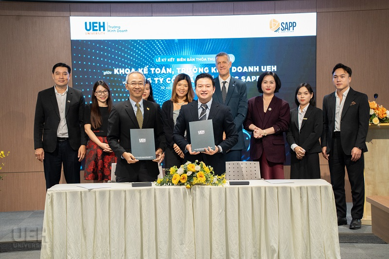 Chiều ngày 26/11/2025, Trường Kinh doanh UEH (COB) phối hợp cùng Công ty Cổ phần Giáo dục SAPP (SAPP) đã long trọng tổ chức Lễ ký kết Biên bản ghi nhớ hợp tác (MOU). Sự kiện đánh dấu một bước tiến quan trọng trong chiến lược tăng cường kết nối giữa nhà trường và doanh nghiệp, đồng thời mở ra những cơ hội mới trong học tập, bồi dưỡng năng lực chuyên môn và phát triển nghề nghiệp cho sinh viên, học viên và giảng viên lĩnh vực Tài chính – Kế toán.