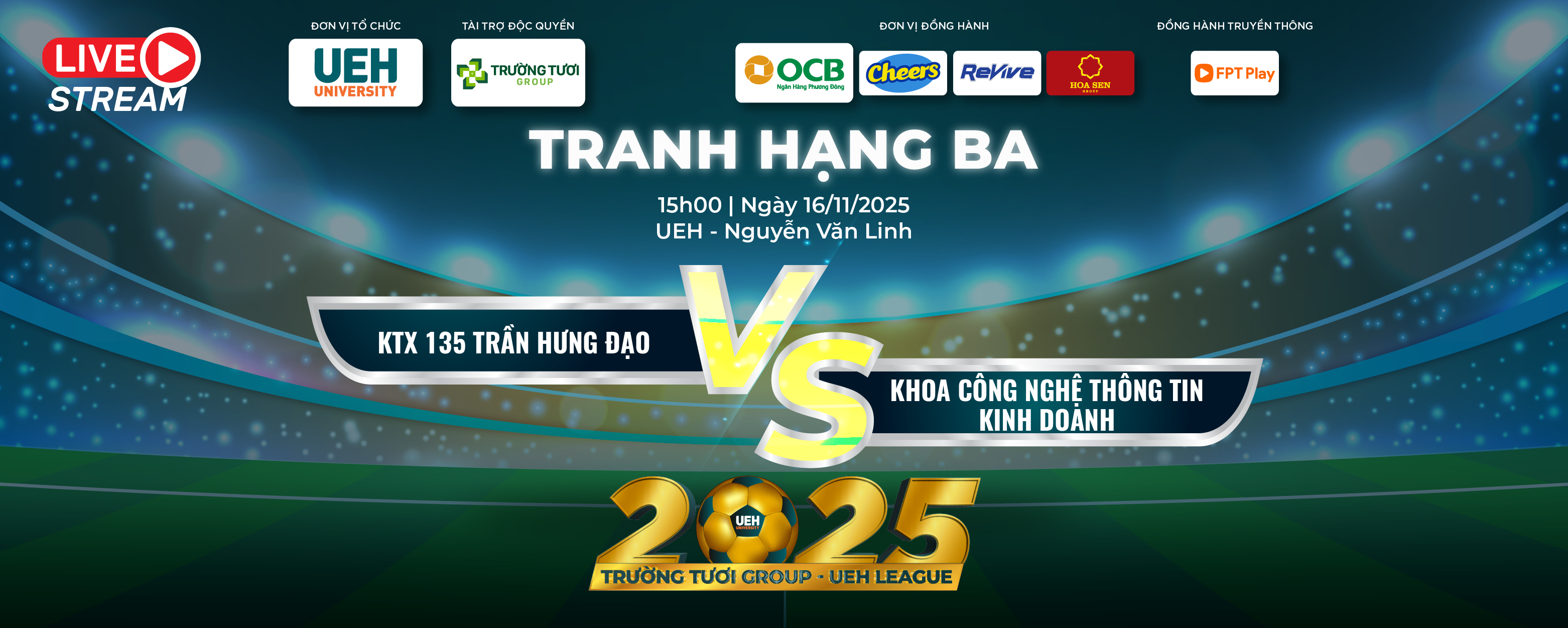 [LIVE] Trường Tươi Group - UEH League 2025: Tranh hạng Ba giữa KTX 135 Trần Hưng Đạo và Khoa Công nghệ thông tin kinh doanh