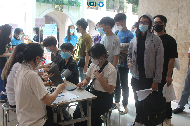 Ngay từ sáng sớm, rất nhiều sinh viên UEH đã xếp hàng đăng ký hiến máu tình nguyện