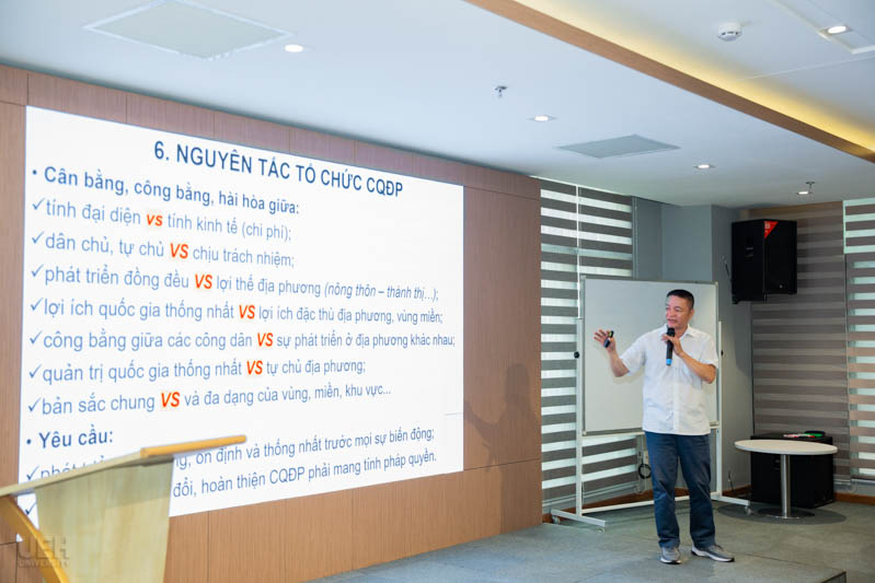 Tại buổi tọa đàm, PGS.TS. Đỗ Minh Khôi – Giảng viên Khoa Luật, Trường CELG UEH đã trình bày khung lý luận về phân cấp và phân quyền trong chính quyền địa phương, từ sự hình thành khái niệm, các lĩnh vực phân quyền (chính trị, hành chính, tài chính, kinh tế) đến mô hình tổ chức và nguyên tắc vận hành. Ông nhấn mạnh tầm quan trọng của việc thiết kế phân cấp hợp lý để bảo đảm hiệu quả hoạt động, tránh bất ổn và gián đoạn cung ứng dịch vụ công. Bài tham luận cũng phân tích xu hướng cải cách quốc tế theo hướng tinh gọn bộ máy, nâng cao quyền tự chủ, minh bạch và trách nhiệm giải trình của chính quyền cơ sở.