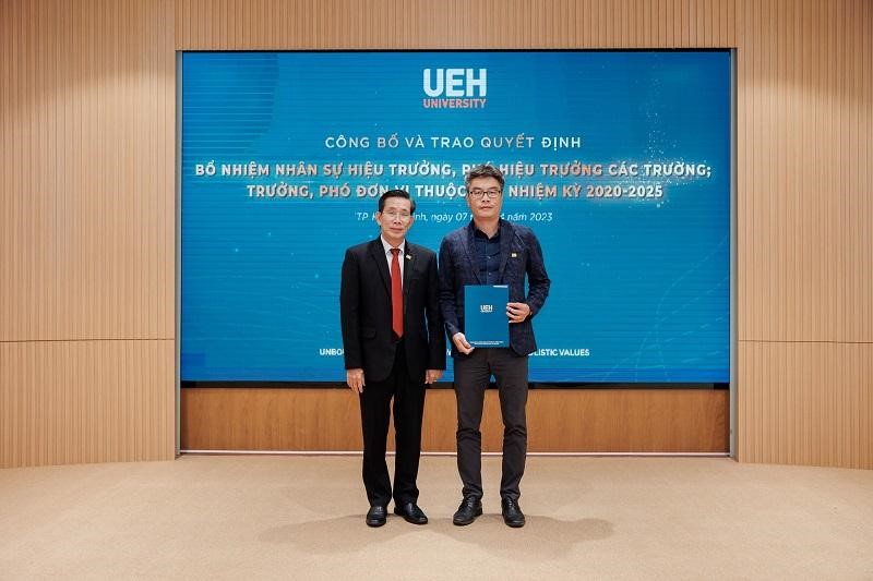 GS.TS. Sử Đình Thành trao các quyết định bổ nhiệm PGS.TS. Phạm Khánh Nam giữ chức vụ Phó Hiệu trưởng phụ trách trường Kinh tế, Luật và Quản lý nhà nước UEH nhiệm kỳ 2020 - 2025