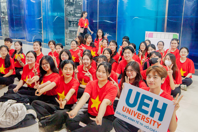 Trong màu áo cờ đỏ sao vàng, từ rạng sáng, các UEHers đã nhanh chóng ổn định dưới sự hướng dẫn của Đoàn Thanh niên - Hội Sinh viên UEH trong tâm thế sẵn sàng cao nhất, chuẩn bị thể hiện trọn vẹn niềm tự hào và màu cờ sắc áo. Các bạn sinh viên UEH đã hát Quốc ca bằng cả trái tim trong Lễ chào cờ “Tôi yêu Tổ quốc tôi”. Đồng thời, những điệu nhảy cùng những tiếng hát ngân vang trong Chương trình hòa ca “Đất nước trọn niềm vui” đã lan tỏa một nguồn năng lượng tích cực và tình yêu nước của các thế hệ sinh viên Thành phố Bác.