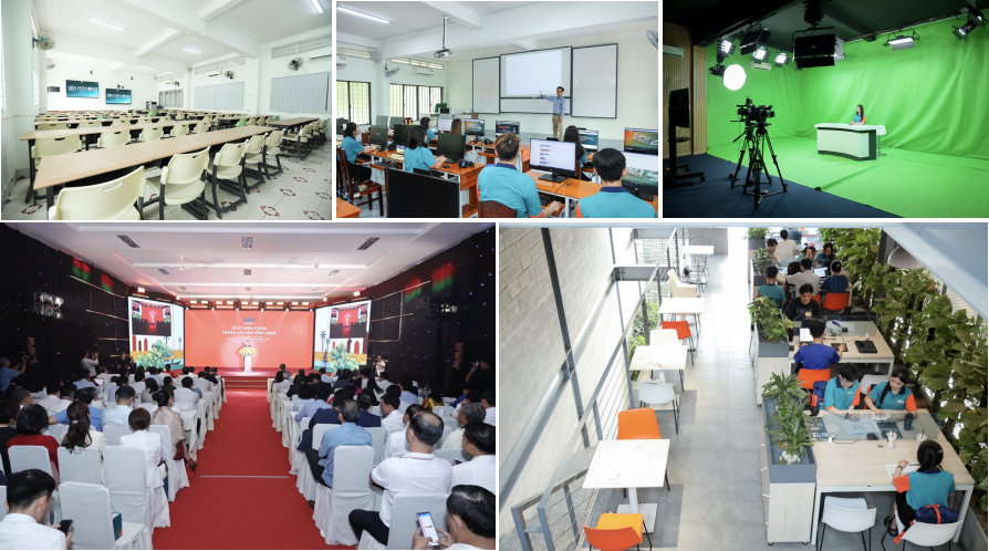 Tại TP.HCM, đặc biệt cơ sở A được cải tạo theo hướng hiện đại, thông minh, mở rộng không gian học tập mở và tích hợp công nghệ giảng dạy - học tập số, nâng cao trải nghiệm cho người học và giảng viên.