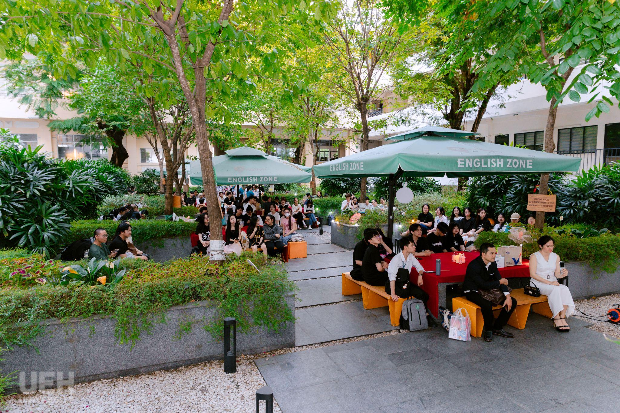 English Zone - công viên tiếng Anh ngoài trời của UEH, ngày càng thu hút sinh viên các trường đại học đến giao lưu, thực hành ngoại ngữ và kết nối văn hóa trong môi trường học tập mở, thân thiện