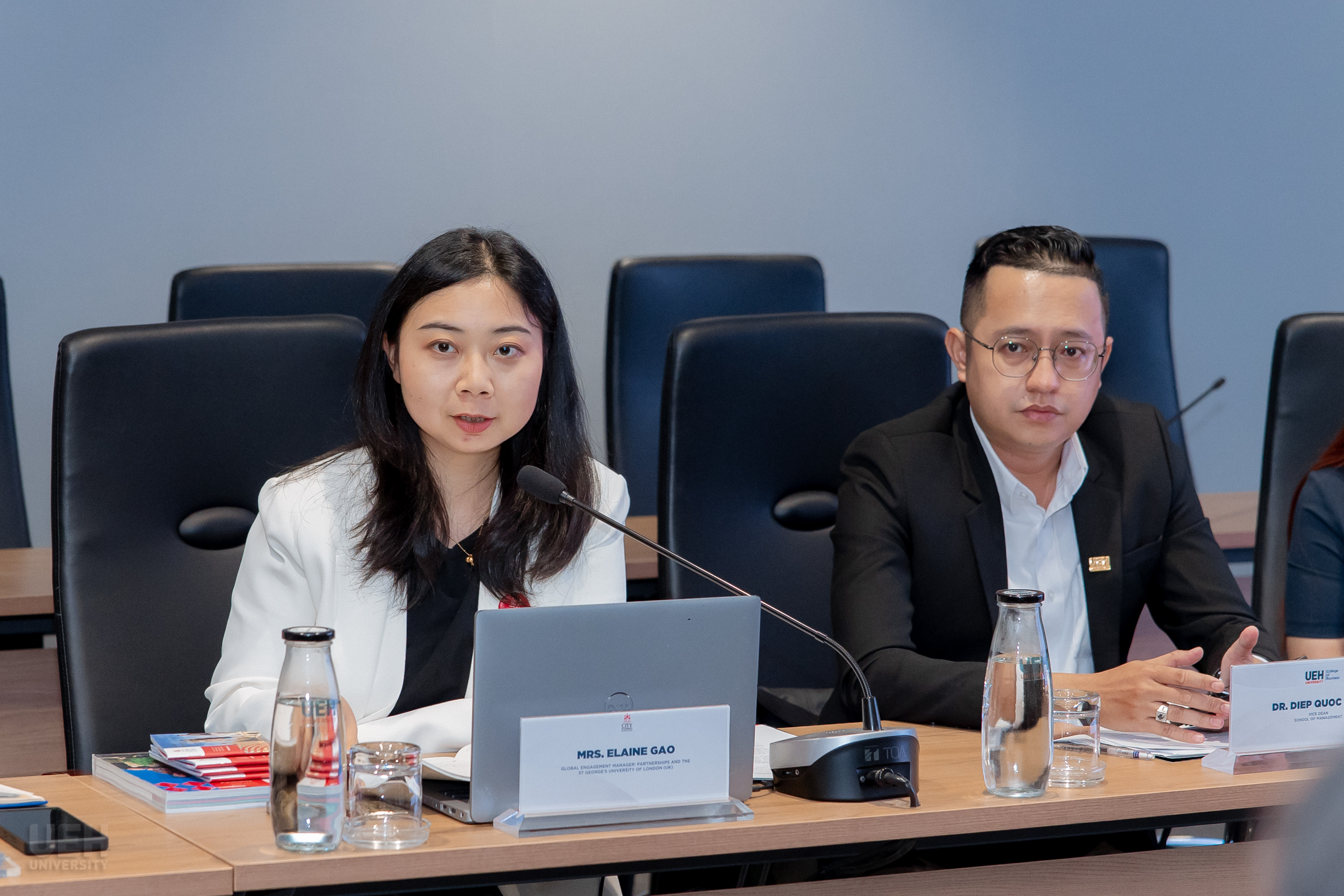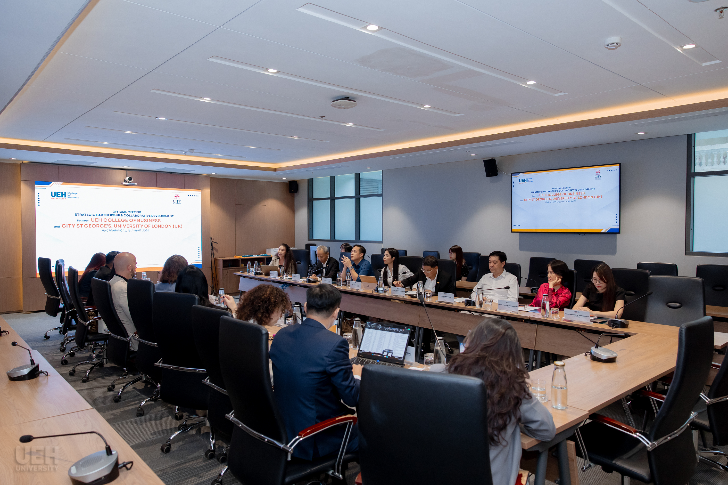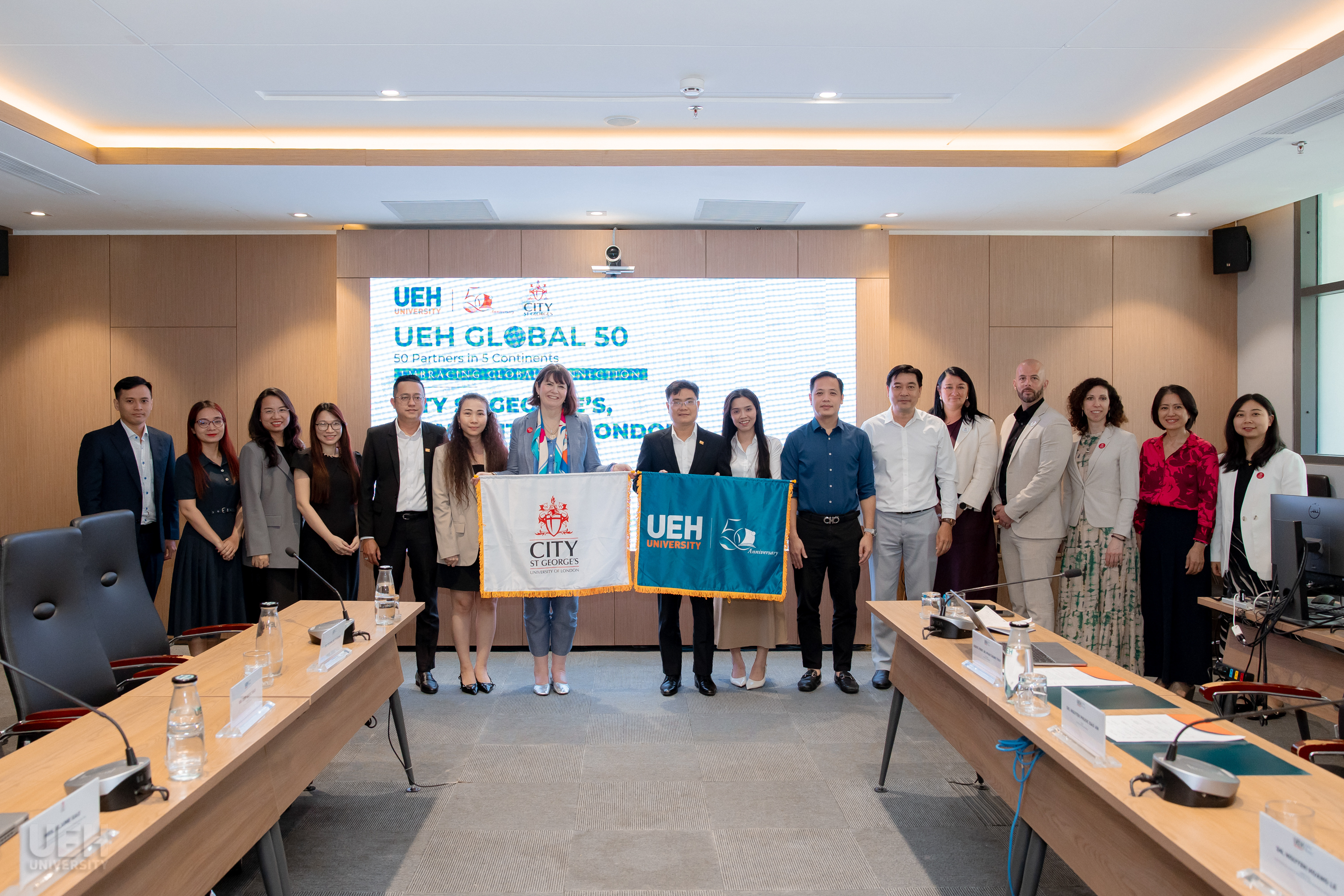 Vào ngày 16/4/2026, Trường Kinh doanh UEH (COB) đã tổ chức buổi làm việc với đoàn đại biểu đến từ City St George’s, University of London, Vương quốc Anh. Sự kiện này là hoạt động quan trọng nằm trong khuôn khổ chương trình “UEH 50 Years - 50 Partners in 5 Continents” nhằm hiện thực hóa các thỏa thuận hợp tác đã ký kết, đồng thời tăng cường hợp tác quốc tế, thúc đẩy phát triển các chương trình đào tạo, nghiên cứu và đổi mới giáo dục, hướng tới kỷ niệm 50 năm thành lập UEH.