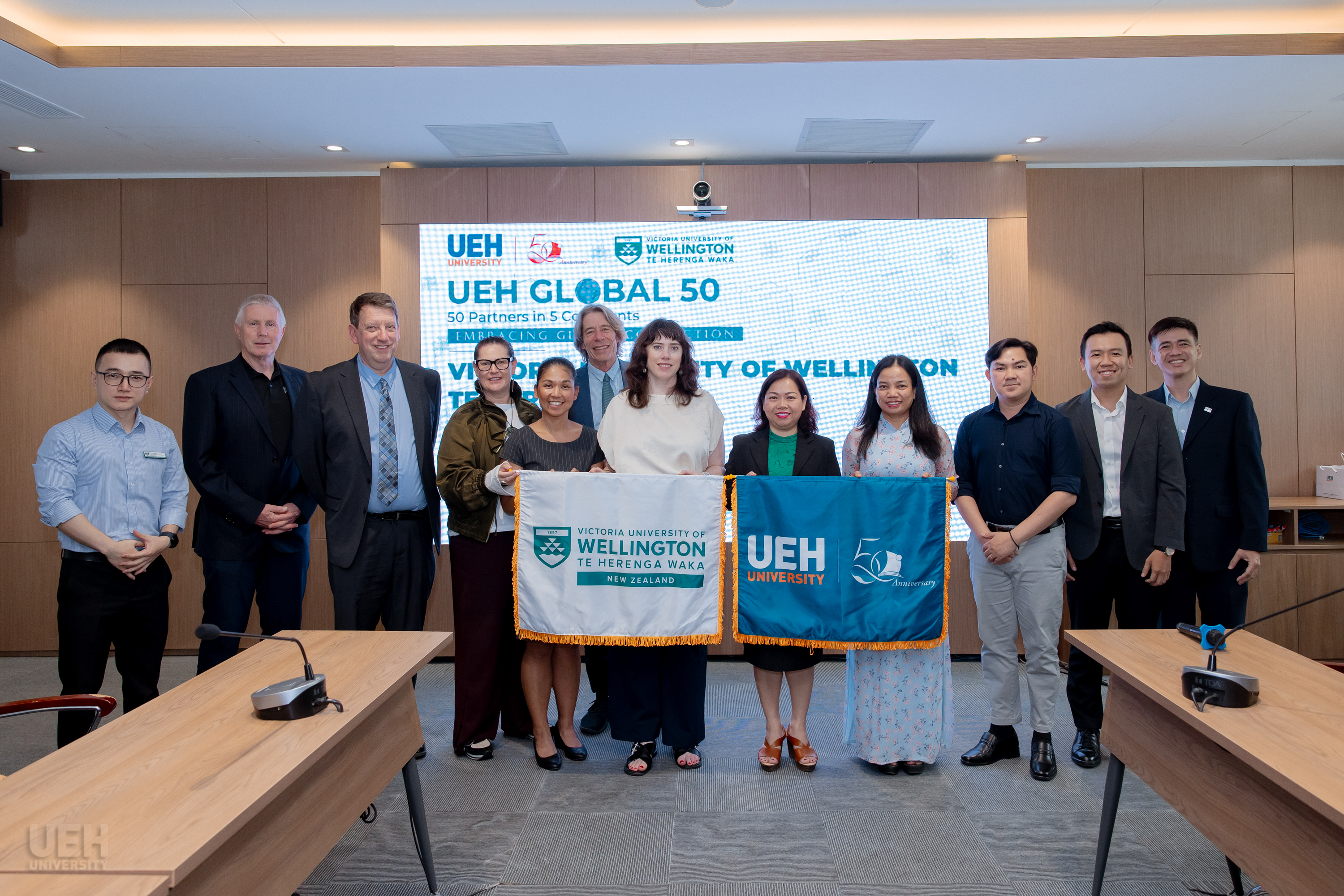 Quan hệ hợp tác giữa UEH và VUW được thiết lập từ năm 2004, tiên phong triển khai chương trình liên kết cử nhân đầu tiên của New Zealand tại Việt Nam. Trong hơn hai thập kỷ, VUW đã đồng hành toàn diện cùng UEH từ việc nâng cao năng lực giảng viên, nâng cấp cơ sở vật chất đến chiến lược kiểm định quốc tế. Đến nay, chương trình đã thu hút hơn 500 sinh viên theo học, với nhiều cựu sinh viên đang làm việc tại các doanh nghiệp trong và ngoài nước.