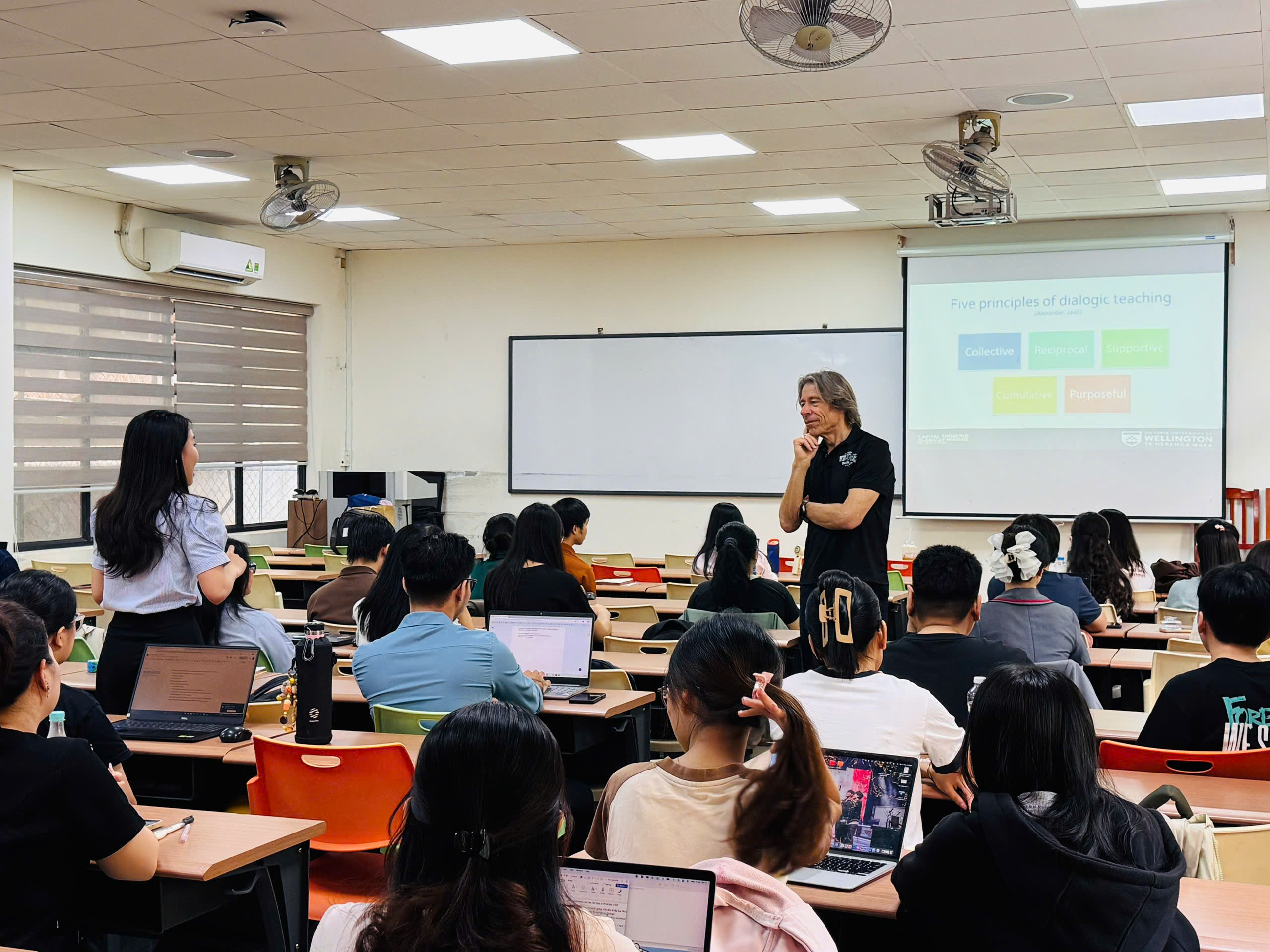 Bên cạnh đó, các chuyên gia từ VUW cũng tham gia giảng dạy, chia sẻ học thuật với giảng viên và sinh viên UEH thông qua các chuyên đề về ngôn ngữ học ứng dụng và định phí bảo hiểm.