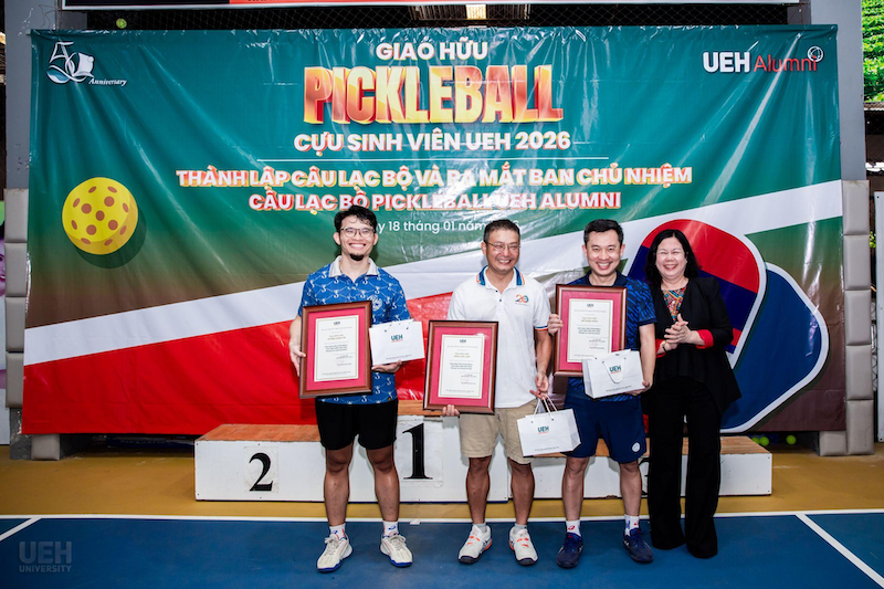 Sáng ngày 18/01/2026, tại sân 3T Pickleball Club, UEH Alumni đã tổ chức Giải giao lưu “Ready for Homecoming 2026” và chính thức ra mắt Câu lạc bộ (CLB) Pickleball dành cho cựu sinh viên. Đây là hoạt động thể thao ý nghĩa, hướng tới chuỗi sự kiện chào mừng kỷ niệm 50 năm thành lập Đại học Kinh tế Thành phố Hồ Chí Minh (UEH).