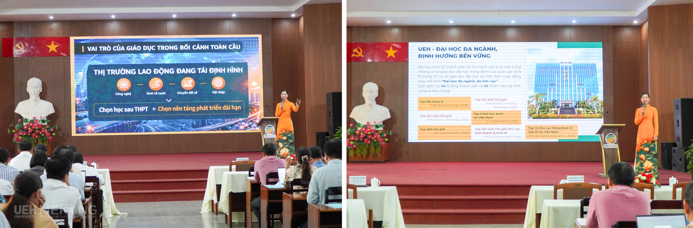 - Đồng hành tư vấn hướng nghiệp: UEH chia sẻ chi tiết tuyển sinh và định hướng nghề nghiệp năm 2026 của UEH và UEH Mekong, cùng các cơ hội, các chính sách hỗ trợ dành cho người học tại vùng ĐBSCL.