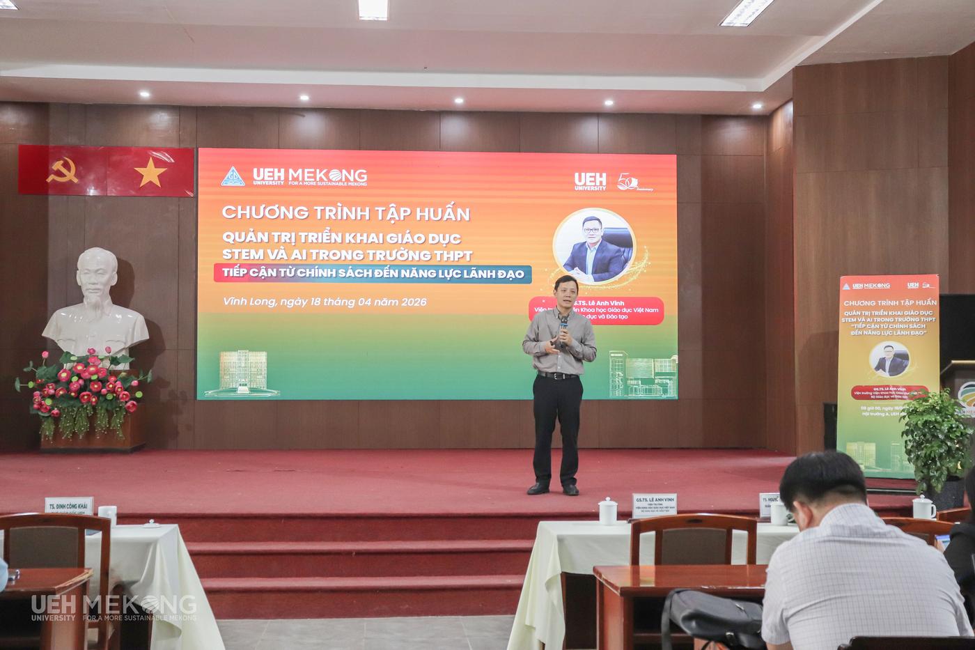 Từ ngày 16/4 đến 18/4/2026, UEH Mekong đã tổ chức thành công Hội nghị Ban Giám hiệu các trường THPT năm 2026, thu hút hơn 200 đại biểu tham dự. Sự kiện không chỉ thắt chặt sự kết nối giữa Giáo dục đại học và Giáo dục phổ thông mà còn cung cấp những giá trị từ chính sách đến thực tiễn, giúp các nhà quản lý chủ động thích ứng trong bối cảnh đổi mới giáo dục.