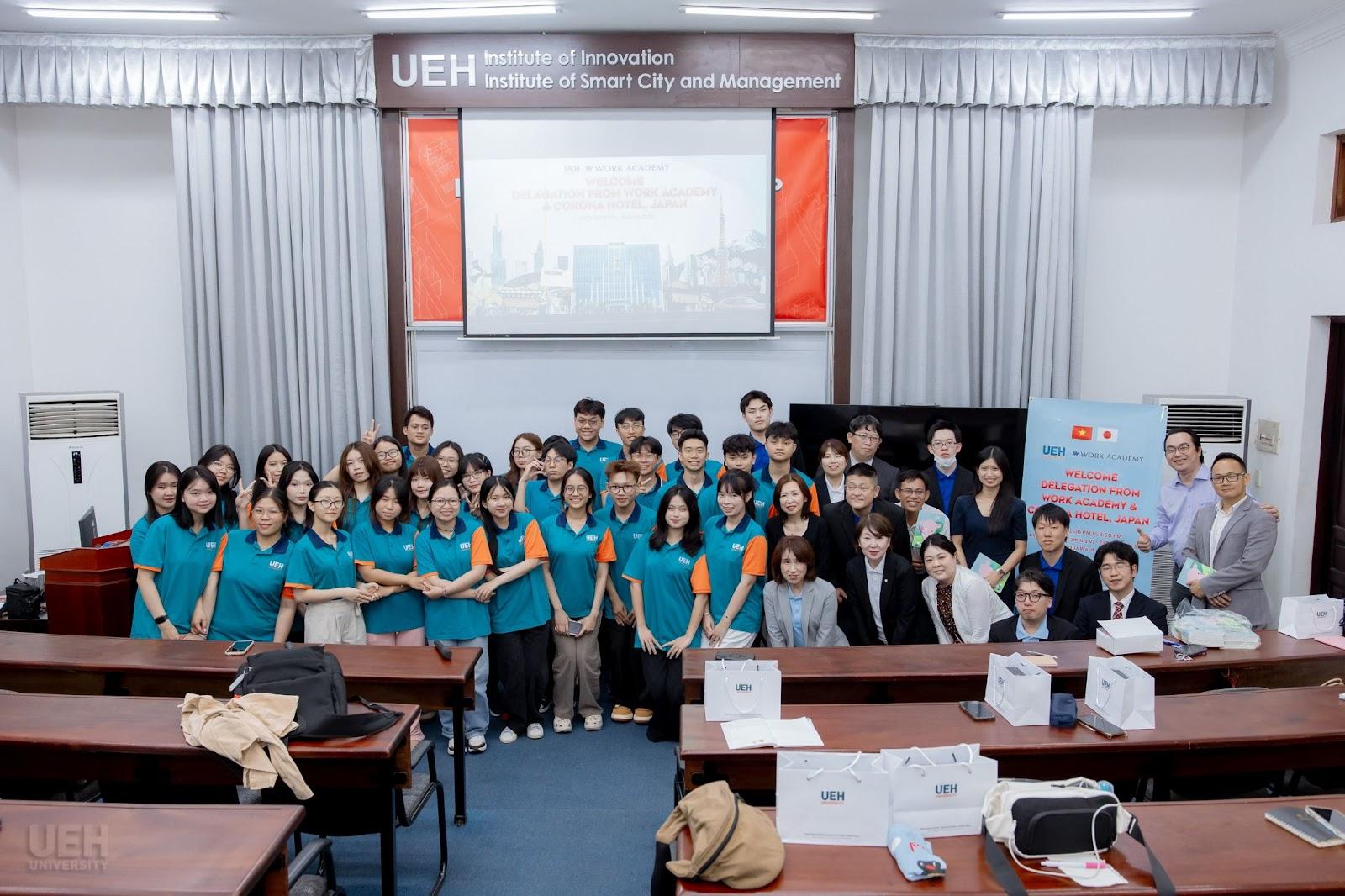 Ngày 04/3/2026, Đại học Kinh tế Thành phố Hồ Chí Minh (UEH) đã tổ chức đón tiếp và làm việc với Đoàn Work Academy và Corona Hotel (Nhật Bản). Chương trình nằm trong khuôn khổ triển khai Thỏa thuận hợp tác ba bên giữa UEH - Work Academy - GOEN Business Training, đồng thời là một trong những hoạt động hướng tới kỷ niệm 50 năm thành lập UEH.