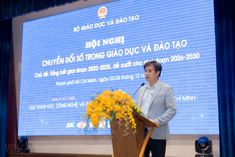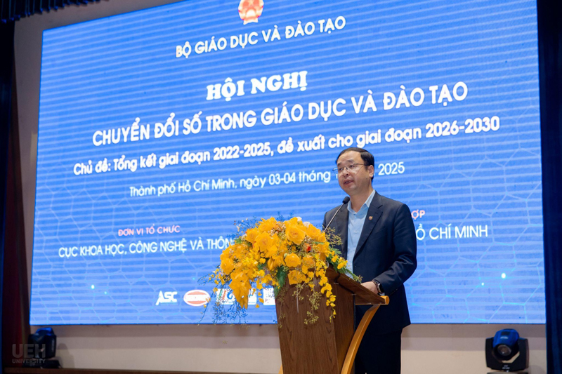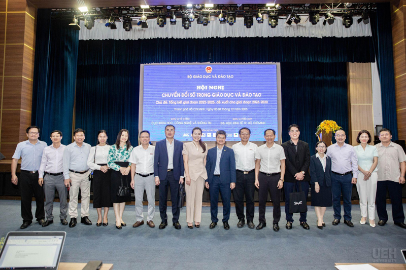 Từ ngày 3 – 4/12/2025, Hội nghị “Chuyển đổi số trong giáo dục và đào tạo” do Bộ Giáo dục và Đào tạo (GD&ĐT) tổ chức tại Đại học Kinh tế Thành phố Hồ Chí Minh (UEH) đã quy tụ lãnh đạo Bộ, đại diện các đơn vị quản lý giáo dục, các địa phương và cơ sở đào tạo trên cả nước, nhằm đánh giá kết quả thực hiện Quyết định 131/QĐ-TTg về tăng cường ứng dụng CNTT và chuyển đổi số giai đoạn 2022-2025. Đồng thời thảo luận, đề xuất các giải pháp định hướng cho giai đoạn tiếp theo 2026-2030.