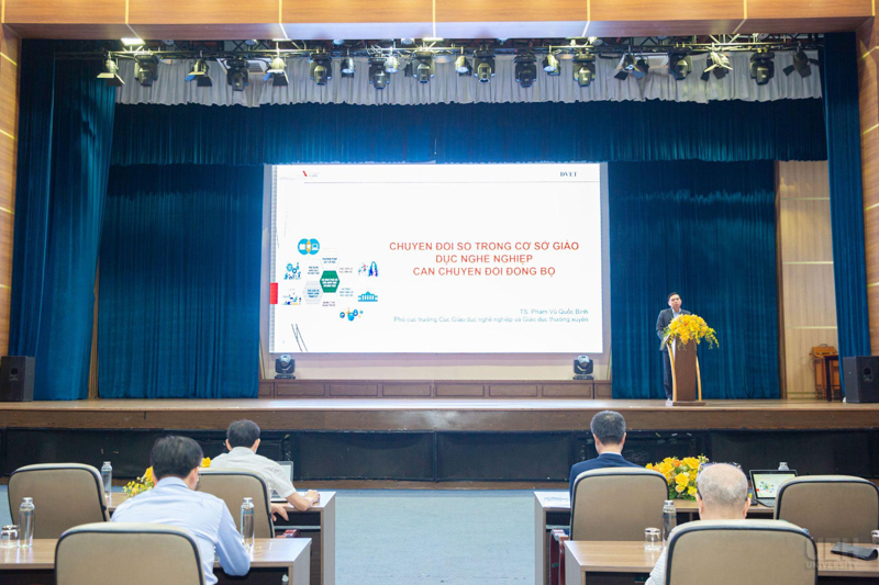 Ông Phạm Vũ Quốc Bình - Phó Cục trưởng, Cục Giáo dục nghề nghiệp, Giáo dục thường xuyên trình bày "Báo cáo chuyên đề kết quả chuyển đổi số giáo dục Nhà nước đến năm 2025 và đề xuất cho giai đoạn 2026-2030"