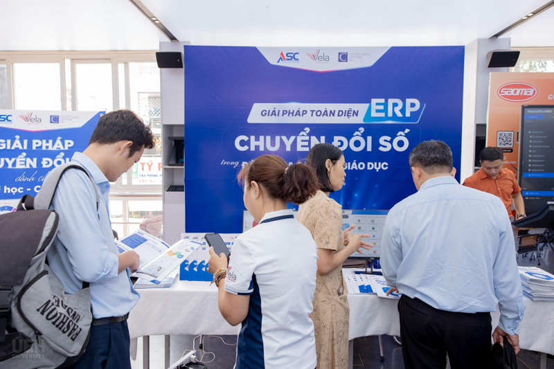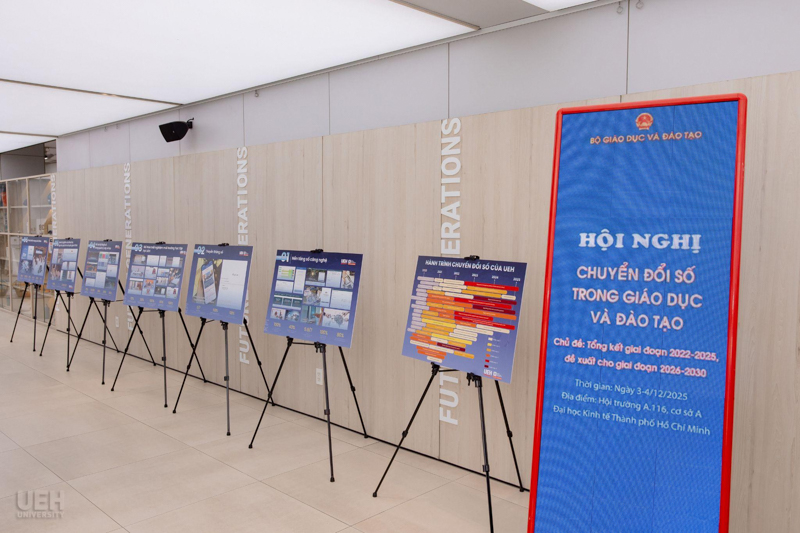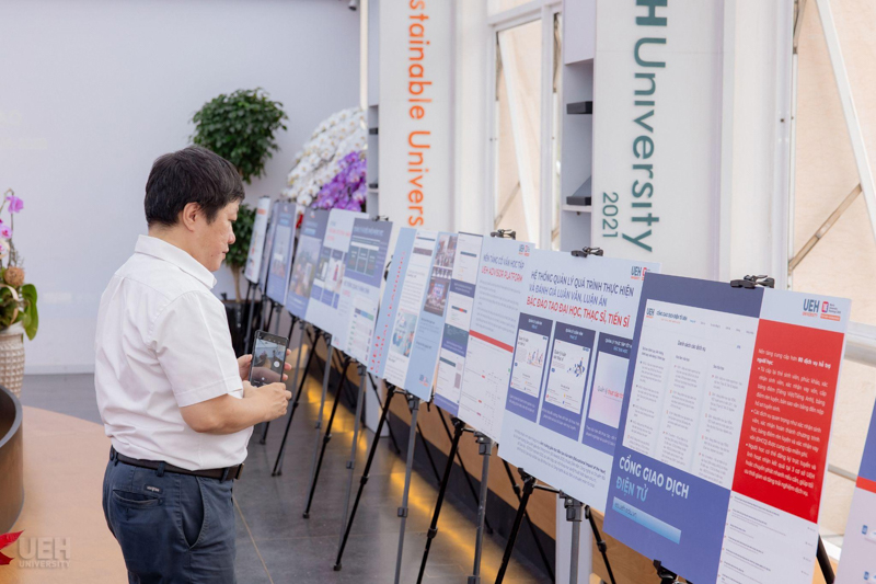 Khu vực triển lãm hành trình chuyển đổi số của UEH trong khuôn khổ Hội nghị
