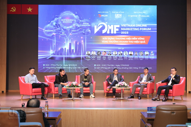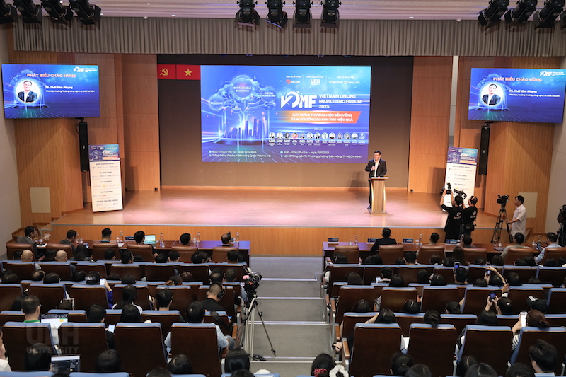 Trong khuôn khổ chương trình “Kết nối cộng đồng - Lan tỏa tri thức - Hành động bền vững”, sáng ngày 17/10/2025, tại Hội trường B1.302, Đại học Kinh tế Thành phố Hồ Chí Minh (UEH) phối hợp cùng Hiệp hội Thương mại điện tử Việt Nam (VECOM) và Mạng lưới các cơ sở đào tạo Thương mại điện tử tổ chức thành công Diễn đàn Tiếp thị Trực tuyến - Vietnam Online Marketing Forum 2025 (VOMF 2025) với chủ đề “Xây dựng thương hiệu bền vững - Tăng trưởng doanh thu hiệu quả” đã thu hút sự tham gia đồng hành của nhiều doanh nghiệp lớn trong lĩnh vực tiếp thị và thương mại điện tử.