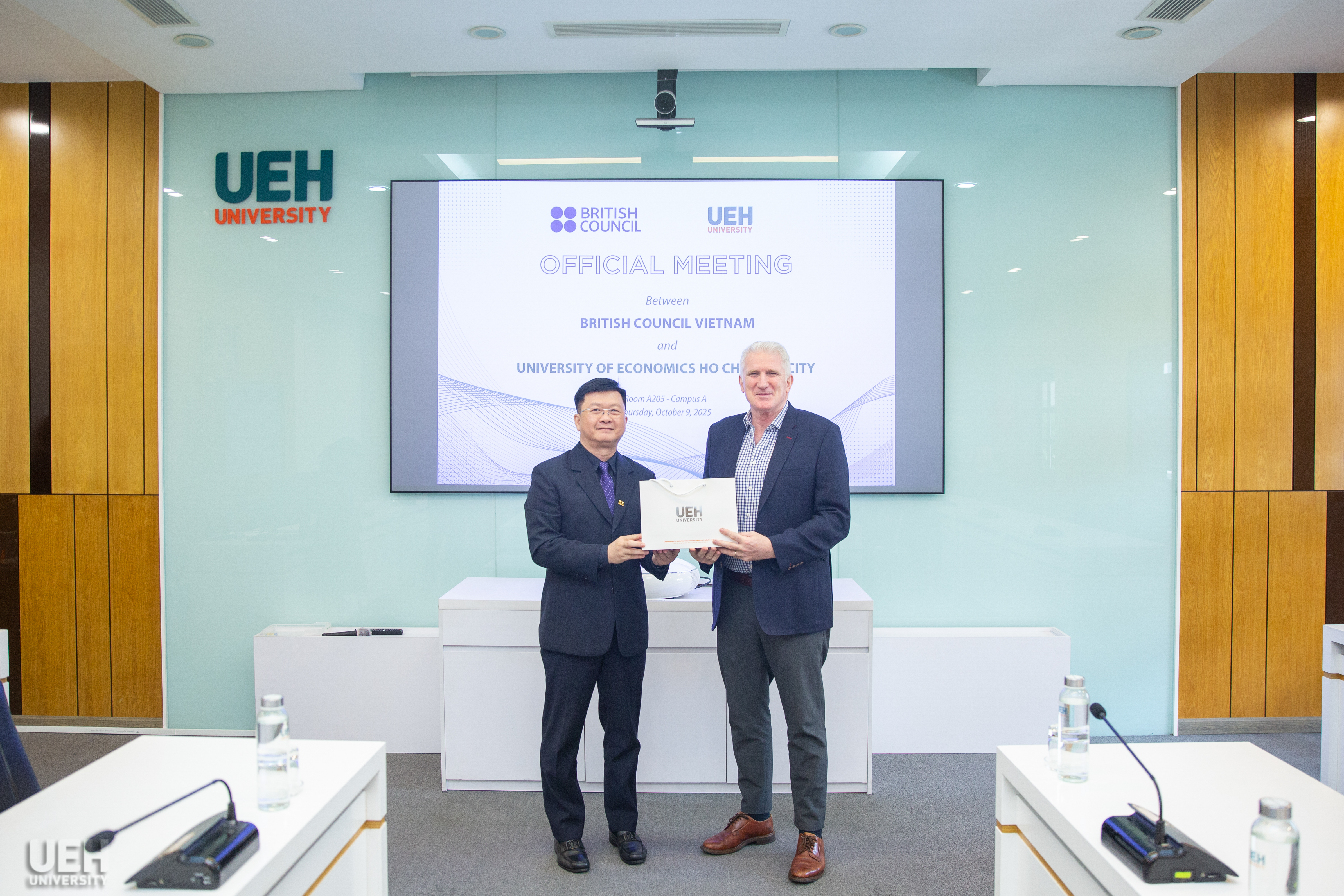 Nhằm thúc đẩy quốc tế hóa giáo dục đại học và nâng cao chất lượng đào tạo theo chuẩn quốc tế, Đại học Kinh tế Thành phố Hồ Chí Minh (UEH) đã có buổi làm việc với British Council Vietnam tại cơ sở A UEH, 59C Nguyễn Đình Chiểu, Phường Xuân Hòa vào ngày 09 tháng 10 năm 2025.