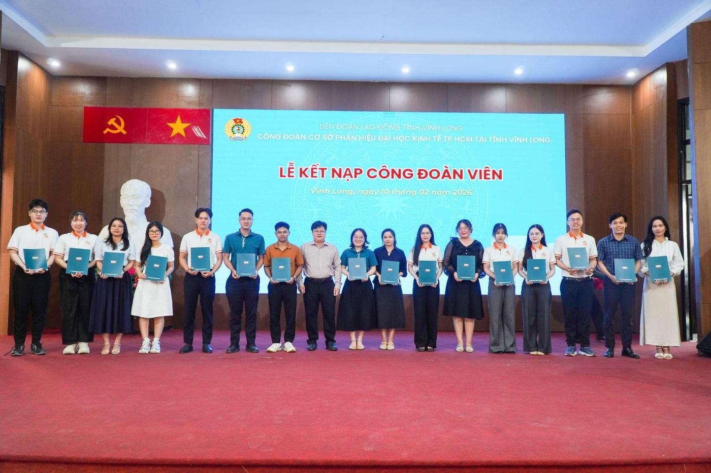 ThS. Hồ Thiện Quyền - Chủ tịch Công đoàn cơ sở UEH Mekong trao Quyết định kết nạp cho đoàn viên mới