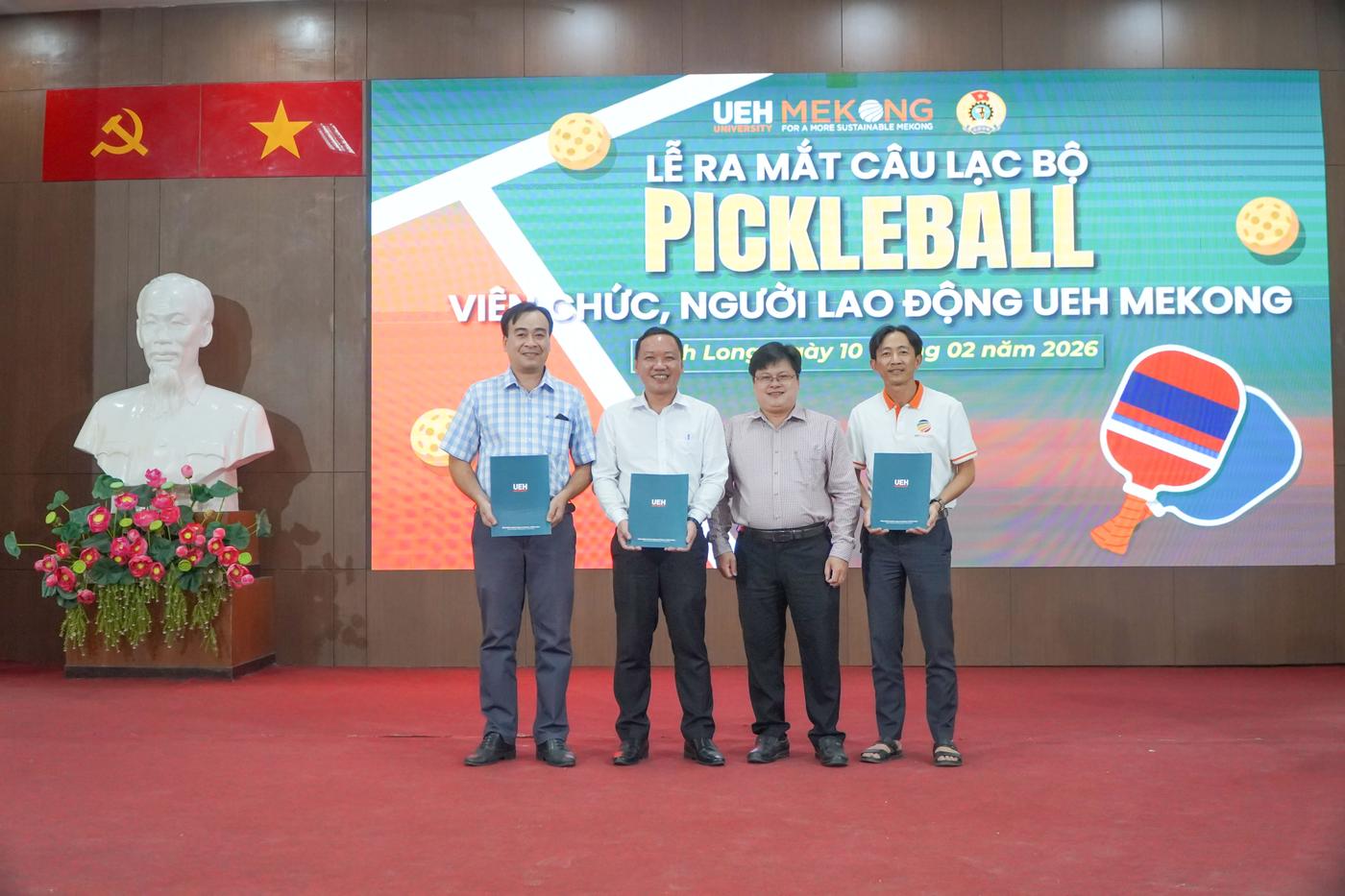 Đặc biệt, việc ra mắt Câu lạc bộ Pickleball và giao lưu Pickleball với các đơn vị, cùng với sự kiện toàn Câu lạc bộ Tiếng Anh của viên chức, người lao động UEH Mekong không chỉ tạo sân chơi nâng cao đời sống tinh thần mà còn góp phần xây dựng môi trường làm việc nhân văn, hội nhập và phát triển toàn diện. Đây cũng là sự cụ thể hóa mục tiêu xây dựng “môi trường đại học hạnh phúc” trong Chiến lược phát triển giai đoạn 2025 - 2030.
