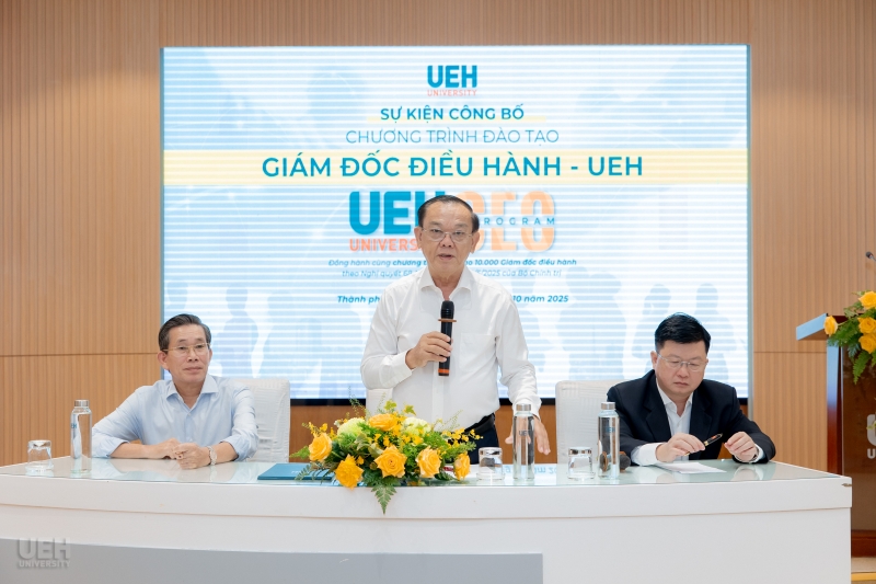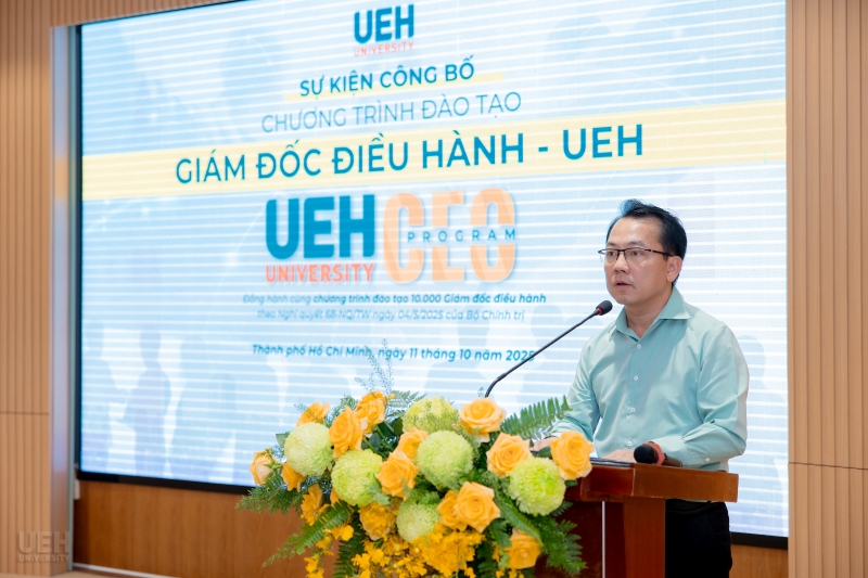 Ngày 11/10/2025, Đại học Kinh tế Thành phố Hồ Chí Minh (UEH) chính thức ra mắt Chương trình Giám đốc điều hành - UEH (UEH CEO Program), một sáng kiến đào tạo hướng đến việc nâng cao năng lực lãnh đạo và điều hành nhằm tái cấu trúc các doanh nghiệp Việt Nam thông qua tích hợp khoa học - công nghệ, đổi mới sáng tạo và chuyển đổi số.