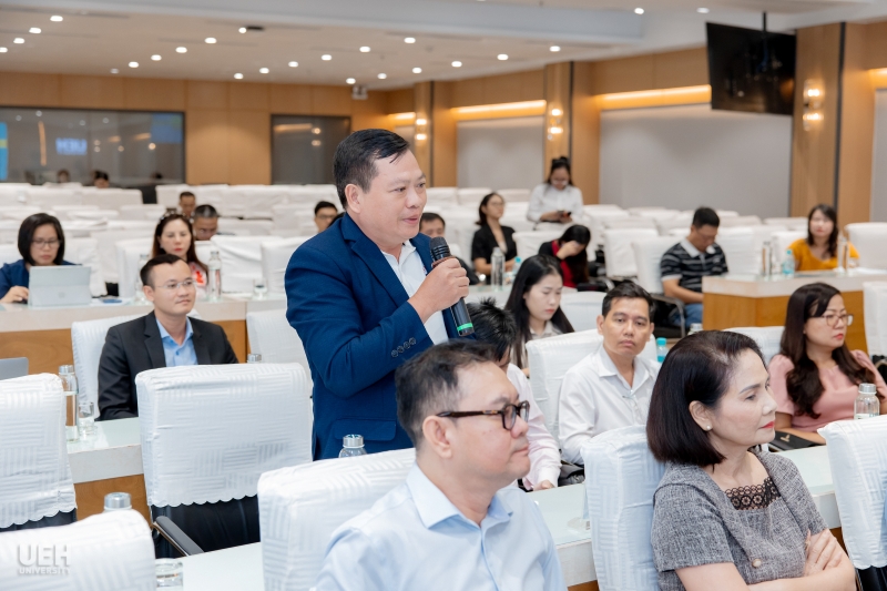 Đại diện cộng đồng doanh nghiệp, ông Nguyễn Anh Đức - Phó Giám đốc Sở Công Thương TP. Hồ Chí Minh, Nguyên Tổng Giám đốc Saigon Co.op đã chia sẻ về nhu cầu thực tiễn và tác động kỳ vọng của UEH CEO Program đối với đội ngũ lãnh đạo doanh nghiệp trong bối cảnh hội nhập kinh tế toàn cầu. “UEH CEO Program là chương trình mang tính tiên phong của UEH trong việc đồng hành cùng TP.HCM và cả nước phát triển đội ngũ lãnh đạo doanh nghiệp chất lượng cao. Hiện nay, Việt Nam có gần 1 triệu doanh nghiệp, trong đó hơn 30% hoạt động tại TP.HCM. Vì vậy, mục tiêu UEH đào tạo 3.000 CEO là một đóng góp rất quan trọng trong tổng thể chương trình quốc gia phát triển 10.000 Giám đốc điều hành theo Nghị quyết 68-NQ/TW (2025) của Bộ Chính trị.” - ông Đức chia sẻ.