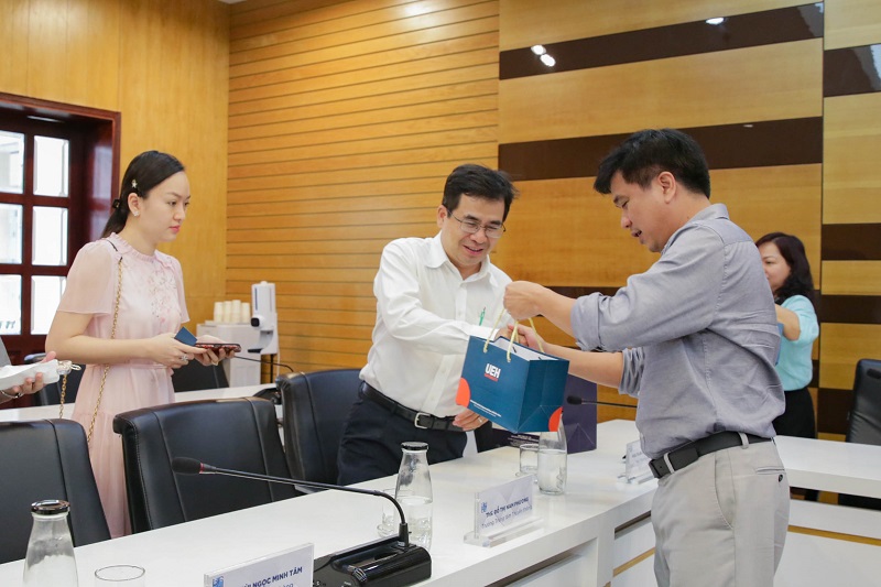 Đại diện Ban lãnh đạo UEH, TS. Bùi Quang Hùng - Phó Hiệu trưởng nhà trường đã bày tỏ niềm vui mừng khi Bệnh viện Đại học Y Dược TP. Hồ Chí Minh đến thăm và làm việc với UEH. Thầy chia sẻ: “UEH là một trong những trường trọng điểm quốc gia, tiên phong thí điểm tự chủ từ năm 2008 và được công nhận cơ chế tự chủ từ năm 2014, đến nay đã đạt được những thành tựu quan trọng. Nhà trường đã khai thác, tận dụng tối đa các quyền được giao và tạo ra những tiền đề quan trọng cho giai đoạn phát triển mới. Điều này xuất phát từ sự khát khao và niềm tin về tự chủ thành công tại UEH; sự quyết liệt, dám nghĩ, dám làm trong triển khai; vai trò đầu tàu dẫn dắt của Ban lãnh đạo Nhà trường với quan điểm lấy tín hiệu thị trường làm trung tâm và văn hóa UEH làm nền tảng. Bên cạnh đó, UEH cũng đã có chương trình đào tạo Quản trị Bệnh viện và khóa đầu tiên cũng đã tốt nghiệp ra trường, trong năm nay UEH sẽ đào tạo chương trình Thạc sĩ. Hôm nay, Trường rất vui mừng và hoan nghênh khi nhận được lời đề nghị đến thăm và học tập kinh nghiệm quản trị tài chính của Bệnh viện Đại học Y Dược TP.HCM. Trên tinh thần chia sẻ, UEH sẵn sàng tư vấn và hỗ trợ giải đáp những thắc mắc cho Bệnh viện Đại học Y Dược TP.HCM để cùng nhau phát triển”.