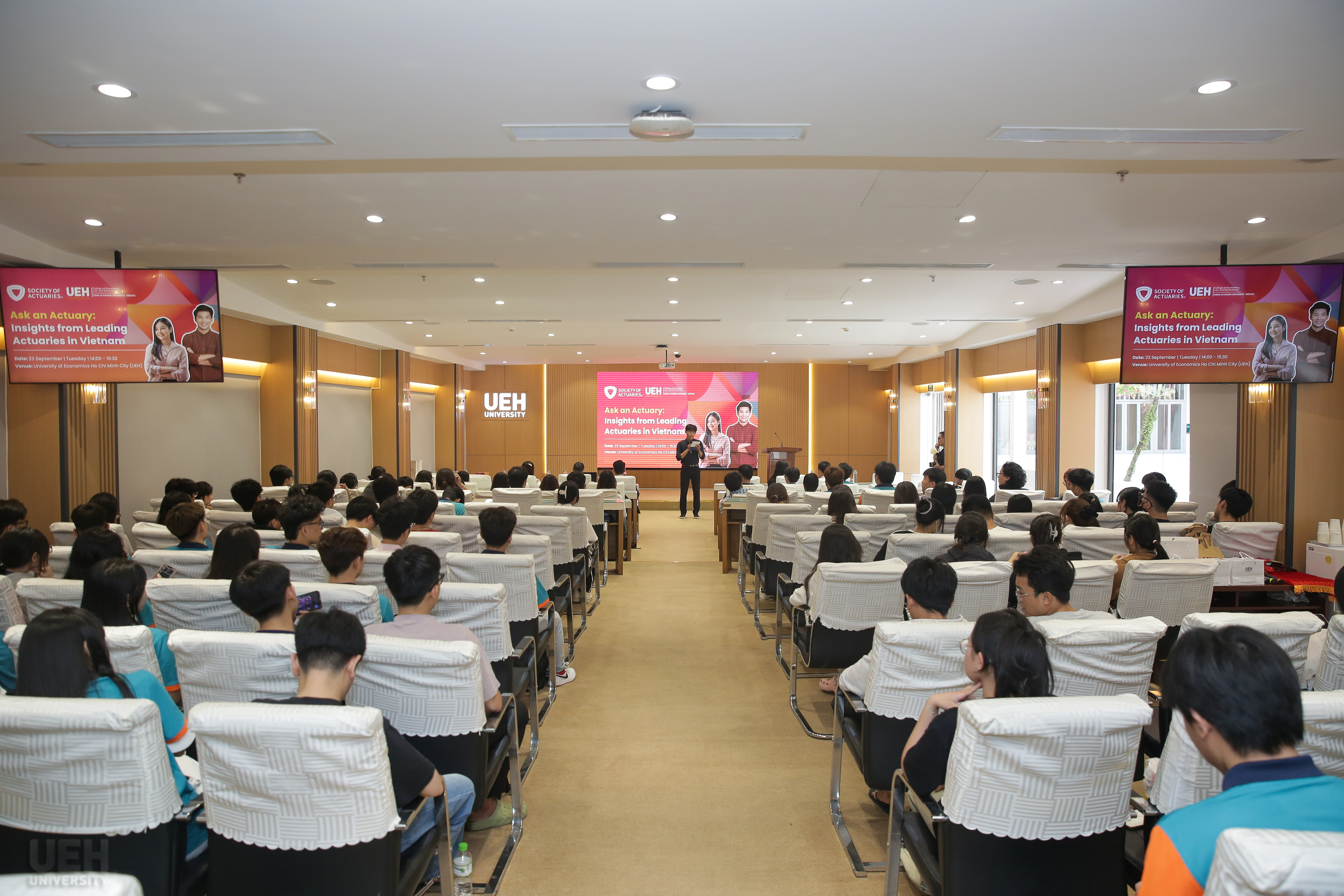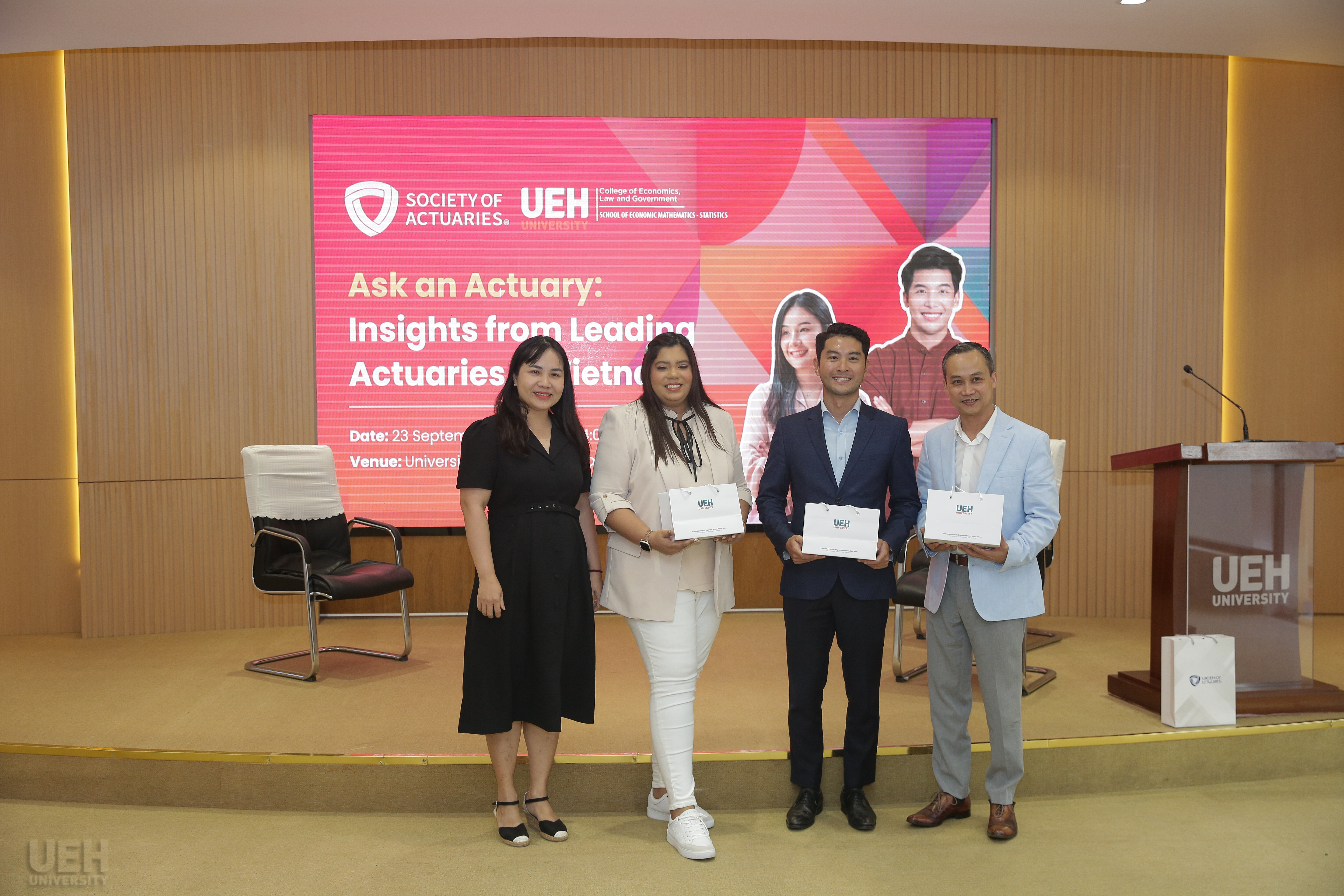 Buổi làm việc có sự tham dự của đoàn chuyên gia SOA, gồm: bà Saadiqa Akhtar (Candidate Engagement Specialist – Asia), các lãnh đạo trong ngành như ông Lê Thành Nam (CFO, AIA Việt Nam), ông Trần Phùng Gia Huy (Appointed Actuary, FWD Việt Nam). Về phía Khoa Toán – Thống kê, có sự hiện diện của PGS.TS. Lê Xuân Trường, Trưởng khoa; TS. Nguyễn Thị Ngọc Miên, Giám đốc chương trình Thạc sĩ Kinh tế Toán; ThS. Bùi Thị Lệ Thủy, Giám đốc chương trình Cử nhân Phân tích rủi ro và Định phí bảo hiểm, cùng giảng viên, sinh viên UEH và sinh viên từ một số trường đại học khác.