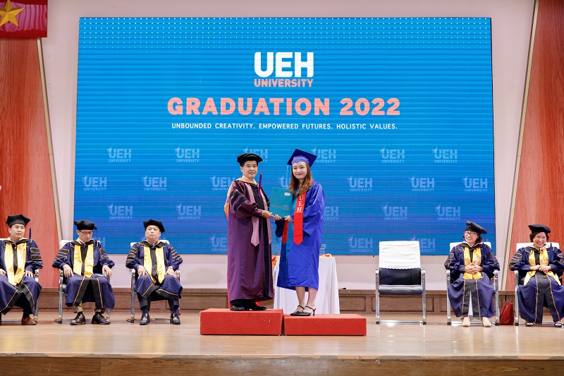Từ ngày 12/07 đến ngày 16/07/2022, tại Hội trường A.116, Đại học Kinh tế TP. Hồ Chí Minh (UEH) chính thức tổ chức Lễ Tốt nghiệp năm 2022 cho hơn 3.800 sinh viên hệ Đại học chính quy (ĐHCQ), Văn bằng 2 ĐHCQ, Liên thông ĐHCQ; và 439 sinh viên hệ Đại học Vừa làm vừa học.
