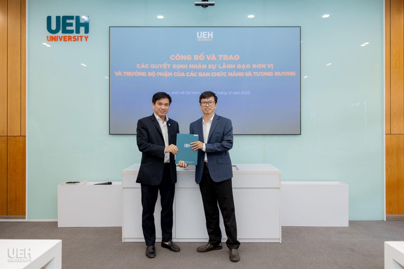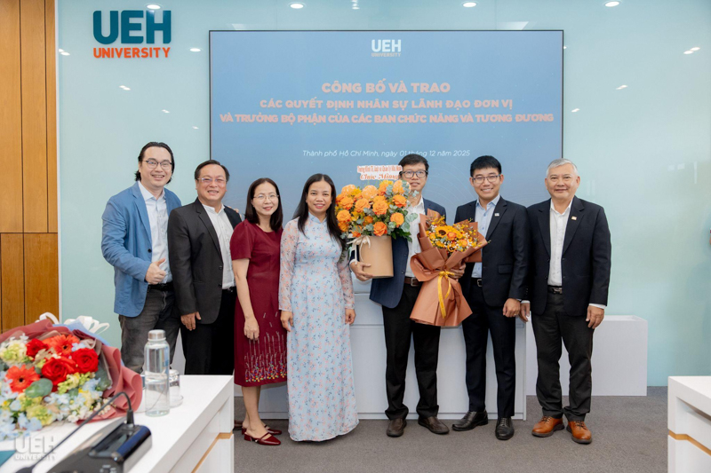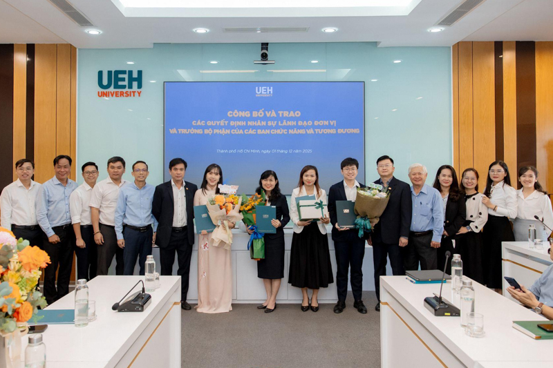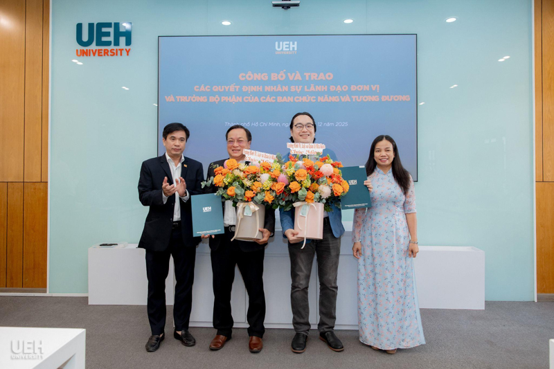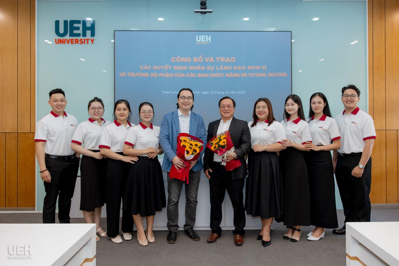 UEH đã trao các thông báo giao nhiệm vụ, quyết định bổ nhiệm đối với những vị trí: vị trí chuyên môn tương đương Phó Trưởng khoa Kinh tế, Trường Kinh tế, Luật và Quản lý nhà nước UEH; Phó Trưởng ban Bảo đảm chất lượng và Kiểm soát nội bộ; Viện trưởng và Phó Viện trưởng Viện Ngôn ngữ - Quốc tế học; cùng 08 Trưởng bộ phận thuộc các ban chức năng và tương đương.