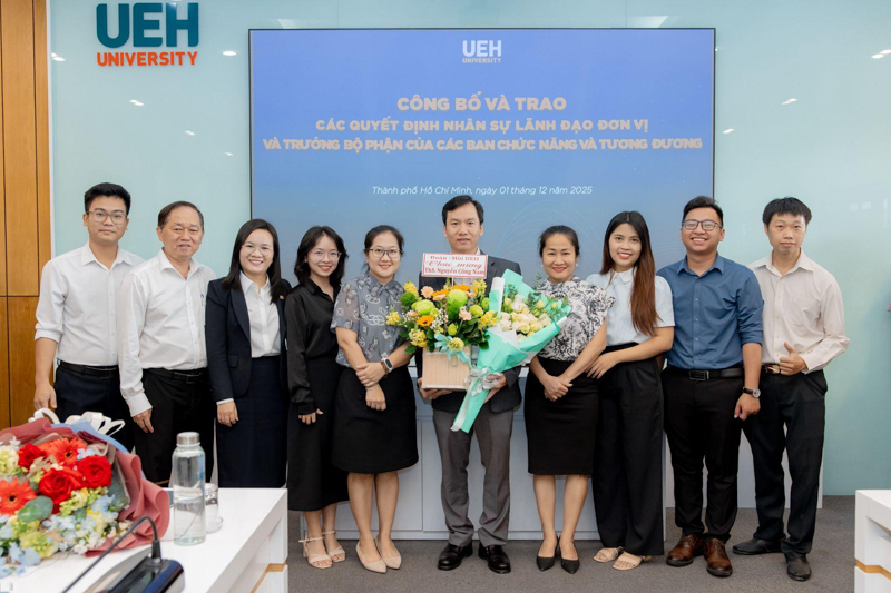 Sáng ngày 01/12/2025, Đại học Kinh tế Thành phố Hồ Chí Minh (UEH) tổ chức Công bố và trao các Quyết định nhân sự lãnh đạo đơn vị và trưởng bộ phận của các ban chức năng và tương đương.