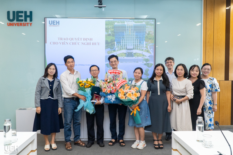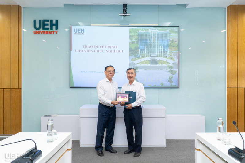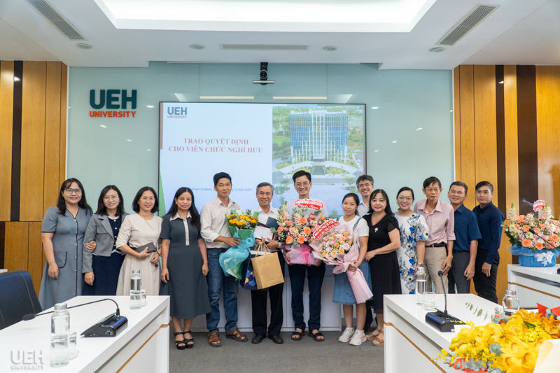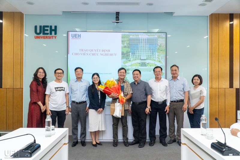 Sáng ngày 29/12/2025, Đại học Kinh tế Thành phố Hồ Chí Minh (UEH) đã tổ chức Lễ trao Quyết định nghỉ hưu cho các viên chức đến tuổi nghỉ hưu, ghi nhận và tri ân những đóng góp bền bỉ, lâu dài của viên chức, người lao động đối với sự phát triển của UEH trong suốt nhiều thập kỷ qua.