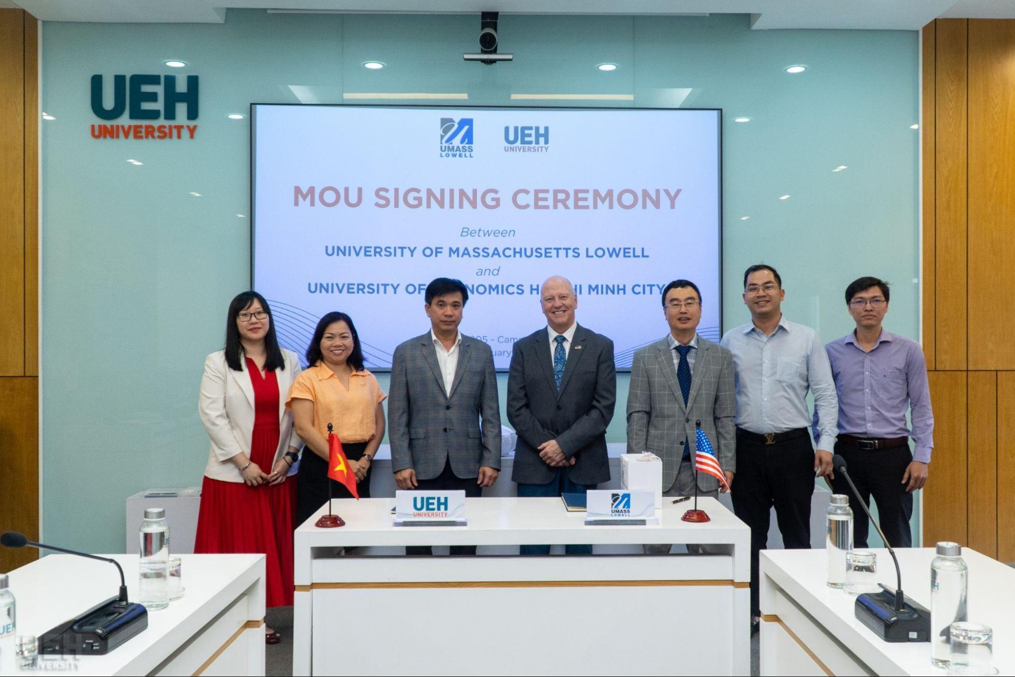 Ngày 09/02/2026, Đại học Kinh tế Thành phố Hồ Chí Minh (UEH) và Đại học Massachusetts Lowell (UMass Lowell, Hoa Kỳ) đã chính thức ký kết Biên bản ghi nhớ hợp tác (MOU), đánh dấu bước phát triển mới trong chiến lược mở rộng mạng lưới đối tác quốc tế và thúc đẩy hợp tác học thuật toàn diện giữa hai cơ sở giáo dục.