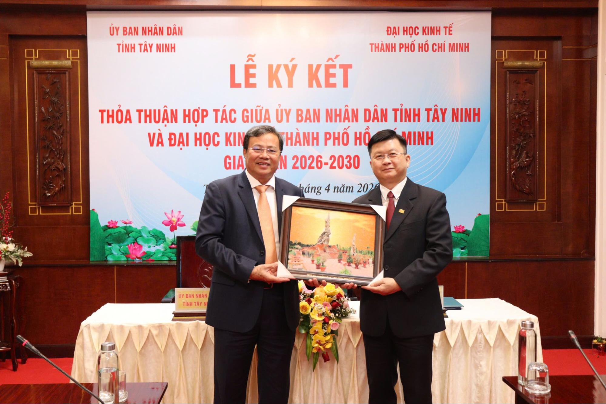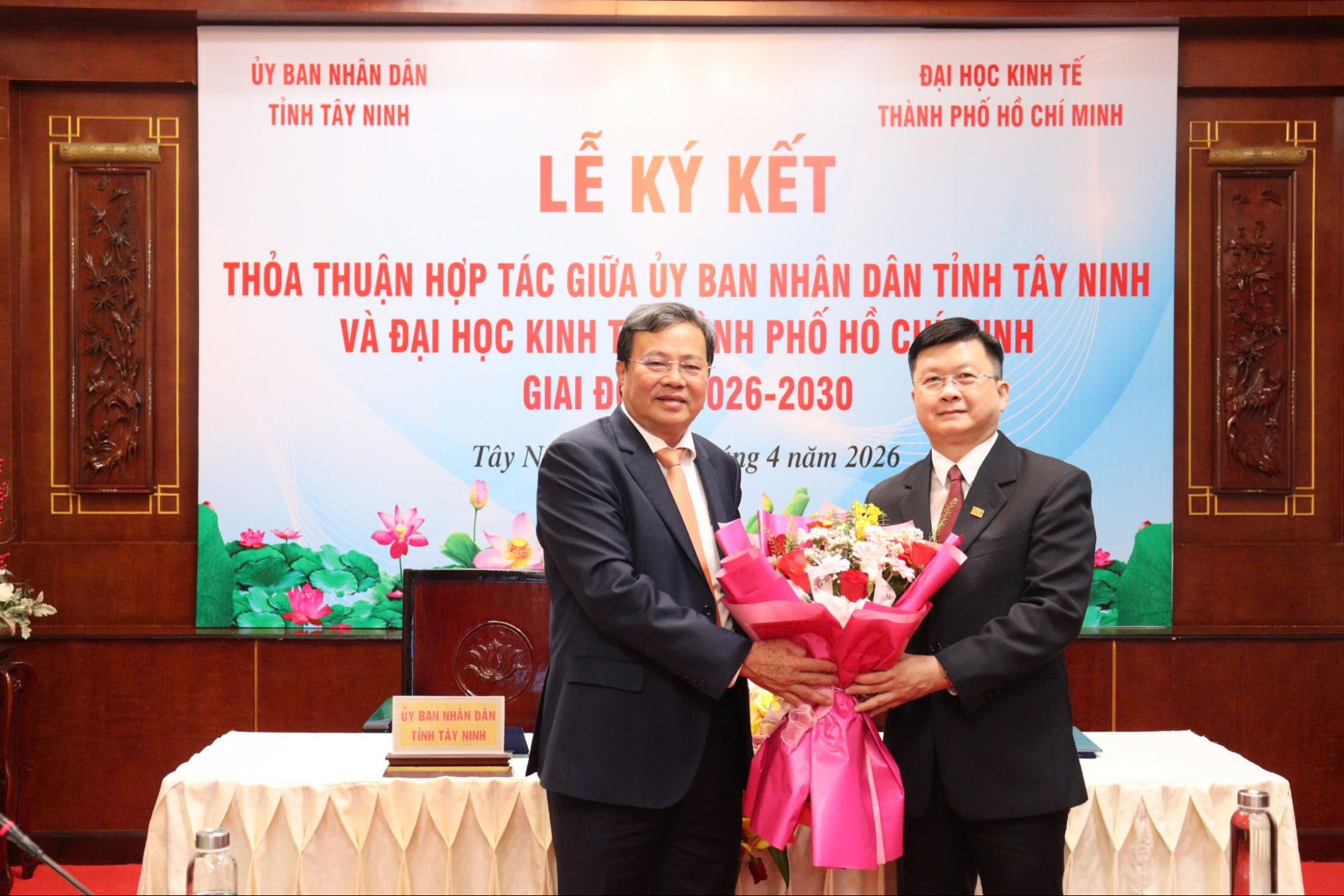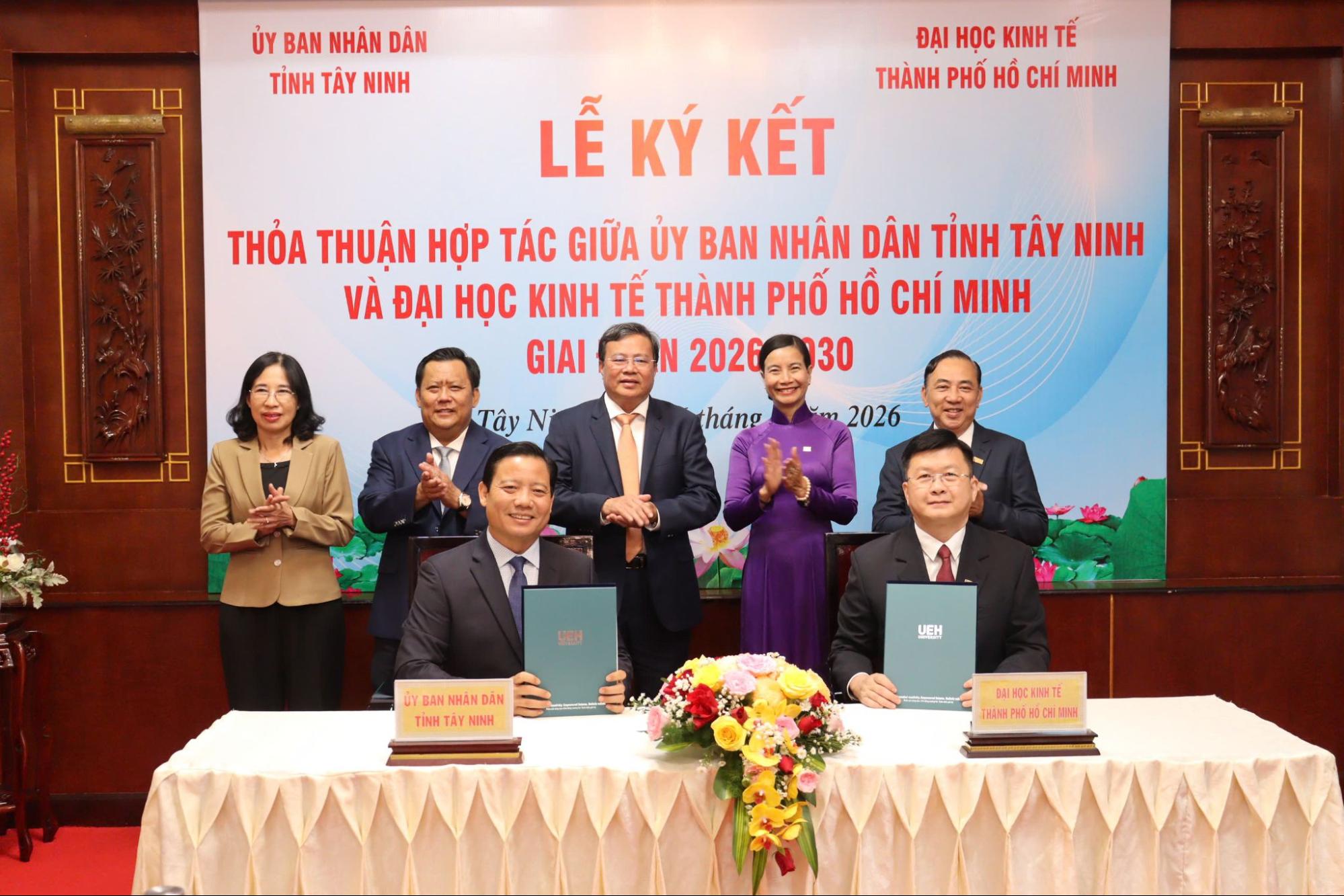 Ngày 16/04/2026, Đại học Kinh tế Thành phố Hồ Chí Minh (UEH) và UBND tỉnh Tây Ninh chính thức ký kết Thỏa thuận hợp tác giai đoạn 2026-2030 nhằm tăng cường kết nối giữa Nhà trường và địa phương, góp phần phát triển nguồn nhân lực chất lượng cao, phục vụ mục tiêu phát triển kinh tế - xã hội trong bối cảnh chuyển đổi số.
