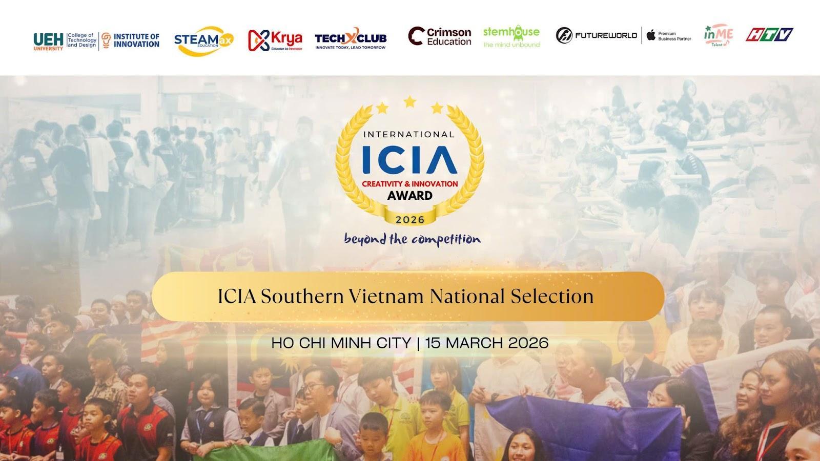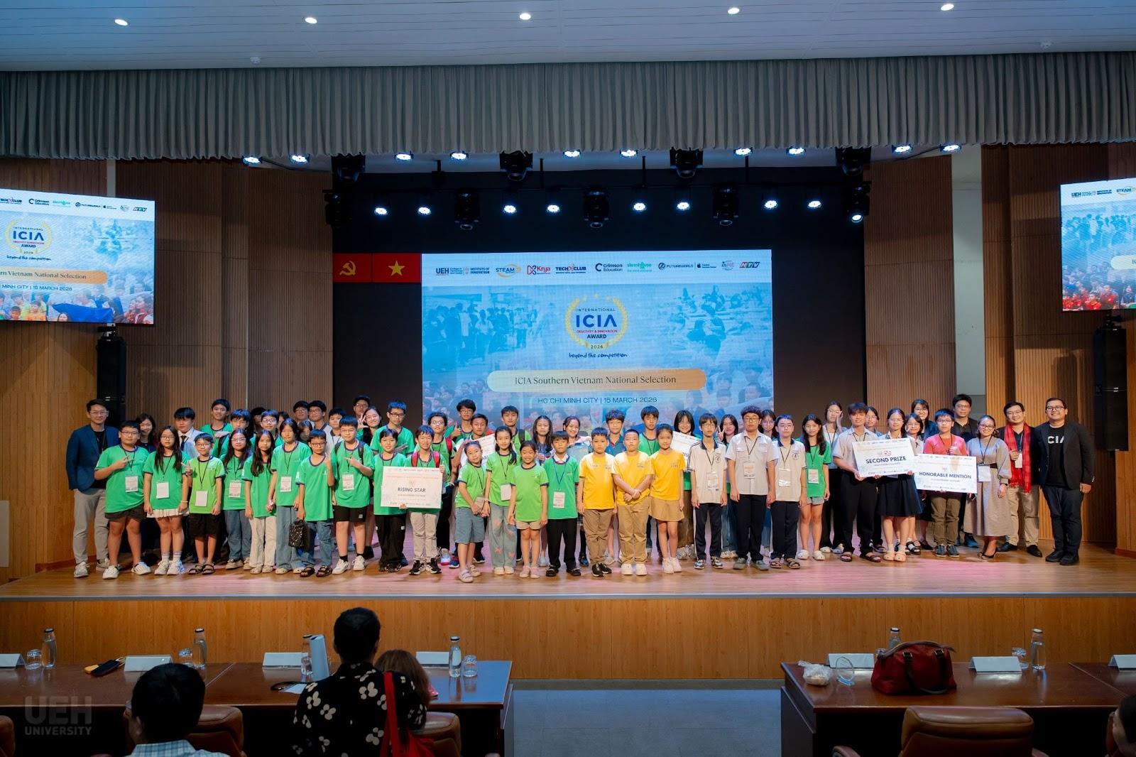 Hưởng ứng Ngày Sáng tạo và Đổi mới Thế giới (WCID) do Liên Hợp Quốc phát động, ngày 15/3/2026, tại Cơ sở B – Đại học Kinh tế Thành phố Hồ Chí Minh (UEH), Viện Đổi mới sáng tạo UEH phối hợp cùng Công ty Cổ phần Giáo dục STEAMax đã tổ chức Vòng loại Quốc gia Giải thưởng Đổi mới sáng tạo Quốc tế 2026 (ICIA 2026) khu vực phía Nam. Sự kiện quy tụ hơn 77 nhà sáng tạo trẻ từ 31 đội thi trên toàn quốc, tranh tài xoay quanh hai chủ đề: AI phục vụ giáo dục đại chúng và mô hình trường học không phát thải.