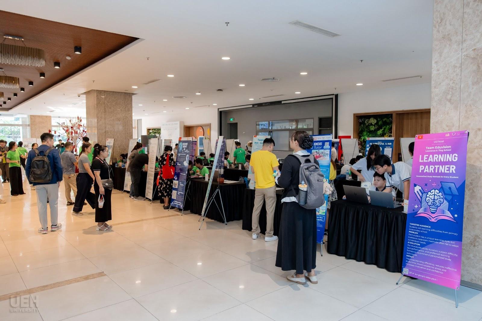 Một trong những điểm nhấn của chương trình là Innovation Showcase - “trung tâm sáng tạo thu nhỏ” tại sảnh B1, nơi các học sinh tự tay hoàn thiện trang trí gian hàng, lắp ráp sản phẩm và tự tin giới thiệu dự án. Thông qua không gian mở này, UEH và STEAMax thúc đẩy cách tiếp cận giáo dục gắn với thực tiễn, đồng thời lan tỏa tinh thần dám thử, dám sáng tạo, truyền cảm hứng để các bạn trẻ tự tin hiện thực hóa những ý tưởng có giá trị cho cộng đồng.