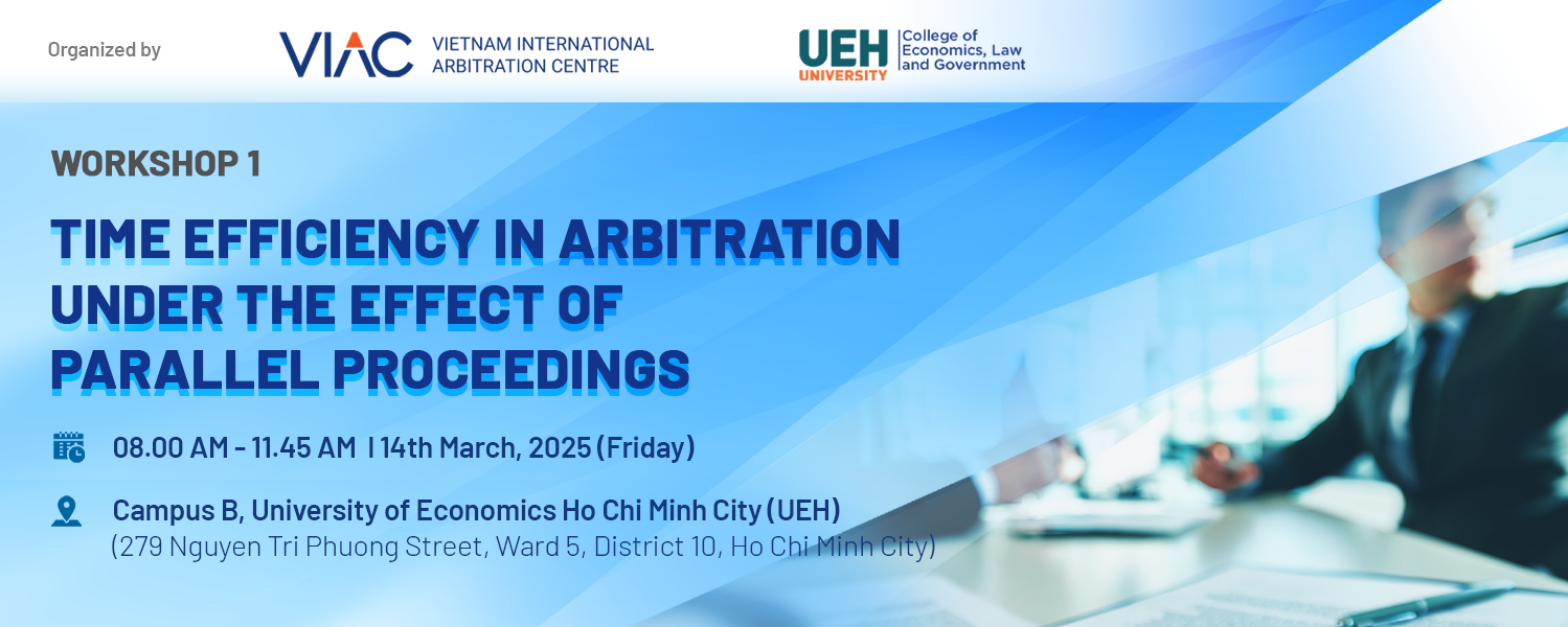 With the aim of compiling analyses and assessments of factors that affect the time efficiency of resolving disputes by arbitration, particularly emphasizing legal procedures occurring concurrently with arbitration, the Vietnam International Arbitration Centre (VIAC) and the College of Economics, Law and Government, University of Economics Ho Chi Minh City (CELG-UEH), co-organize the Workshop “Time efficiency in arbitration under the effect of parallel proceedings”. Through experts’s sharing and interactive discussions, the event is expected to provide valuable insights and practical applications, offer constructive recommendations for arbitration legal framework to address such situations more effectively and minimize delays in dispute resolution.