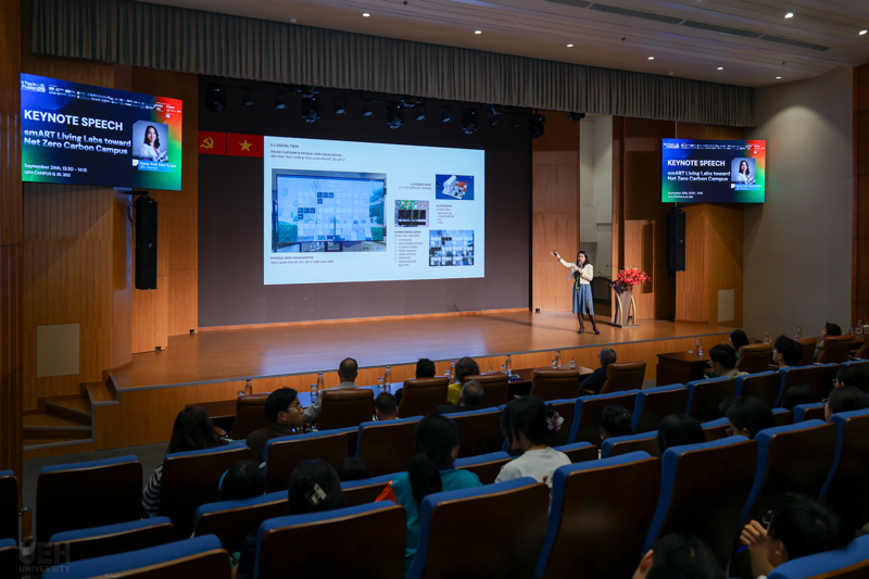 UEH ISCM’s “smART Hub” Living Lab is a pioneering, flexible, co-creation-oriented model addressing environmental challenges and sustainable development; aiming for a Net Zero Carbon Campus, the project deploys Digital Twin technology and Environmental Monitoring Sensors to visualize energy, water, and air data, transforming the entire UEH campus into a living laboratory that enables practical learning and research while advancing innovation and sustainability-linked education.