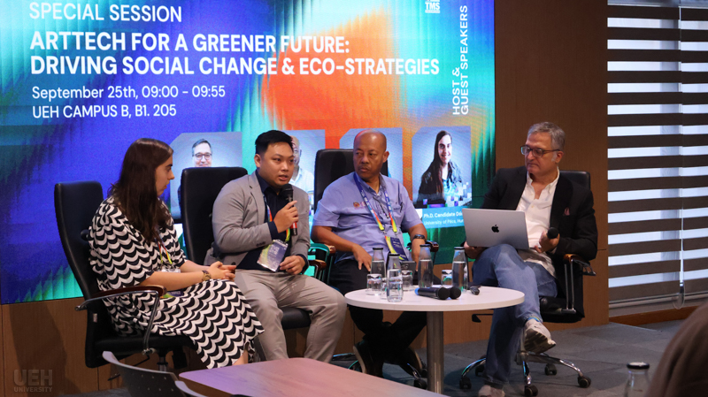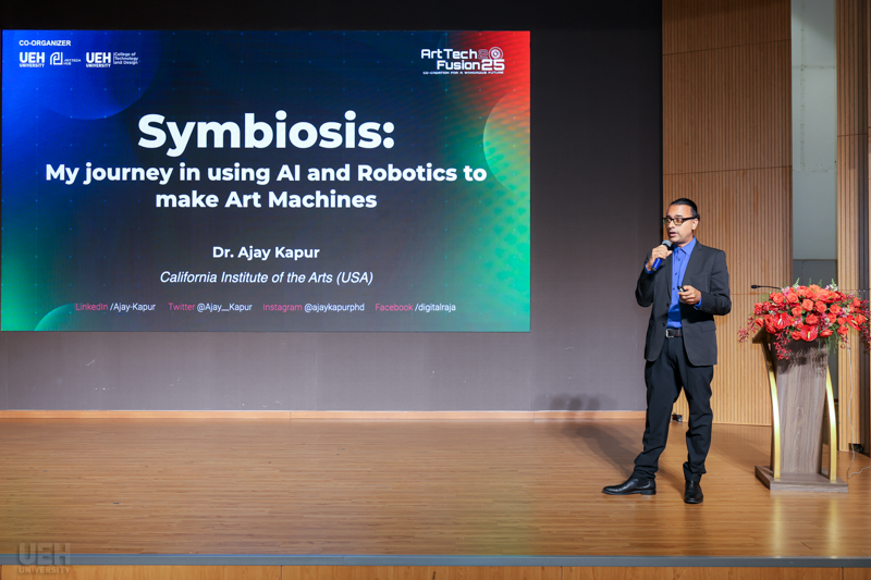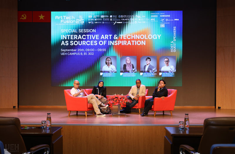 The event welcomed UEH leadership and a broad contingent of international guests from Asia, Europe, and the Americas, including California Institute of the Arts (United States); Tsinghua University (China); University of Saint Joseph (Macao); Pantheon Institute of Design & Technology (Italy); State University of Campinas (Brazil); Universiti Sains Malaysia; Berlin School of Economics and Law (Germany); The University of Hong Kong; National Yunlin University of Science and Technology (Taiwan); Xi’an Academy of Fine Arts (China); London South Bank University (United Kingdom); Chulalongkorn University (Thailand); University of Pecs (Hungary); Prince of Songkla University (Thailand); and many other esteemed scholars, artists, and designers, affirming ATF25’s position within the global ArtTech collaboration network.