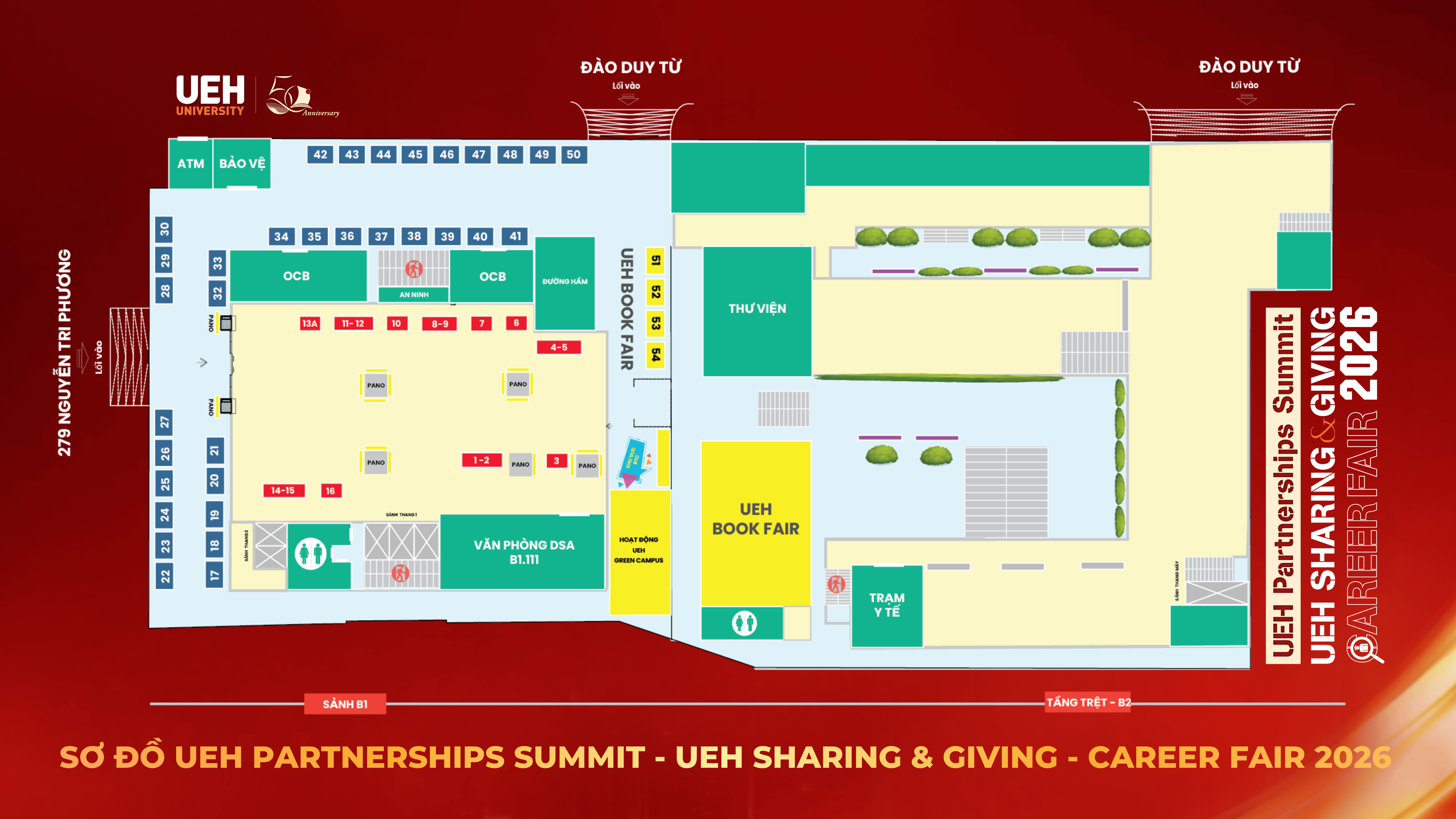 From April 13 to 17, 2026, a series of activities celebrating UEH’s 50th anniversary will be held at the B1 Lobby, UEH Nguyen Tri Phuong Campus. Key highlights include the UEH50 Photobooth and the UEH50 Legacy Wall. This will be an open exhibition and interactive space where UEHers can capture memorable moments, as well as share their messages, emotions, and congratulations in celebration of UEH’s 50-year milestone.