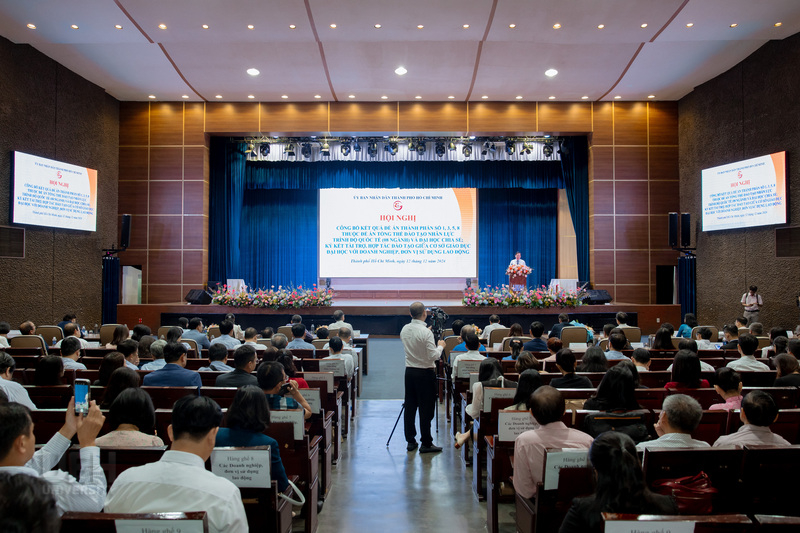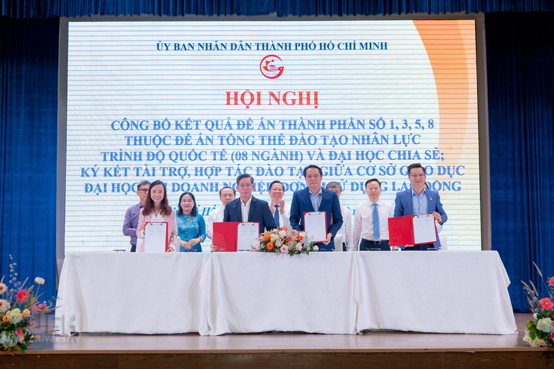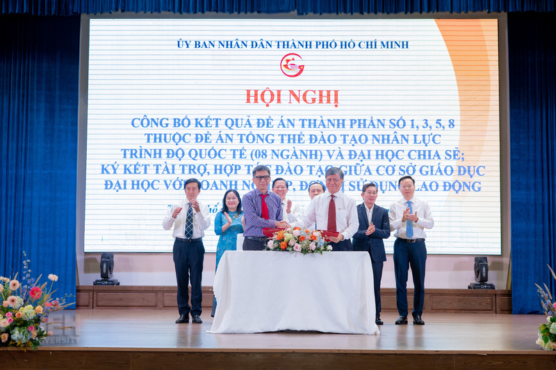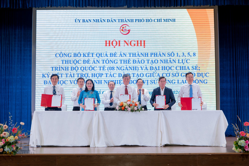 Implementing the Resolution of the 11th Ho Chi Minh City Party Congress, 2020 – 2025 term, University of Economics Ho Chi Minh City coordinated with the Ho Chi Minh City People's Committee and the Department of Education and Training to organize a Conference to announce the research results of Component Projects No. 1, 3, 5, 8 of the Overall Project on training international-level human resources (08 majors), Sharing University, and memorandum of understanding on training cooperation between higher education institutions and businesses and employers.