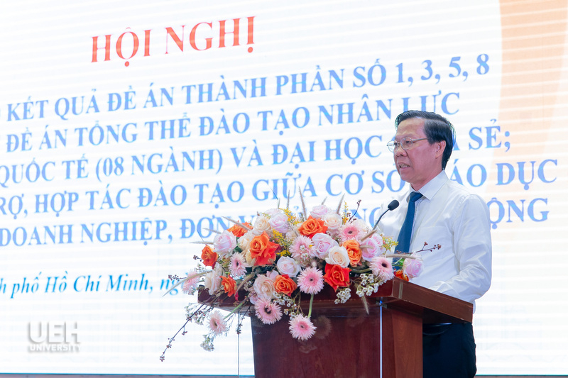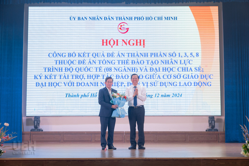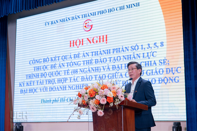 On December 12, 2024, at University of Economics Ho Chi Minh City (UEH), the conference "Announcing the Results of Component Projects No. 1, 3, 5, 8 of the Overall Project on Training International-Level Human Resources (08 Majors) and Sharing University" organized by UEH in coordination with the People's Committee of Ho Chi Minh City and the Department of Education and Training took place successfully.