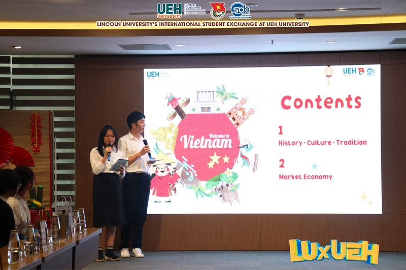 The opening ceremony at UEH began with vibrant musical performances from the School of Banking and a welcome speech from the School of Banking, College of Business (COB-UEH). Students were introduced to the culture, history, and economy of Ho Chi Minh City and Vietnam through presentations by UEH students. In contrast, Lincoln University students showcased the culture and economy of New Zealand.