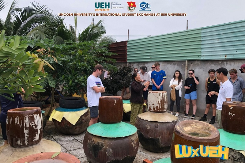 On the fourth day, students from Lincoln University and UEH had the opportunity to explore the unique culture and lifestyle of the Mekong Delta through an exciting trip to Ben Tre, a region renowned for its picturesque nature and traditional coconut industry. Through this visit, students could learn about harvesting and producing coconut-based products. They also discovered the artistic value of intricate handcrafted items. Additionally, they enjoyed specialty dishes from the Mekong Delta, showcasing the rich and distinctive flavors of the Southwest region of Vietnam.