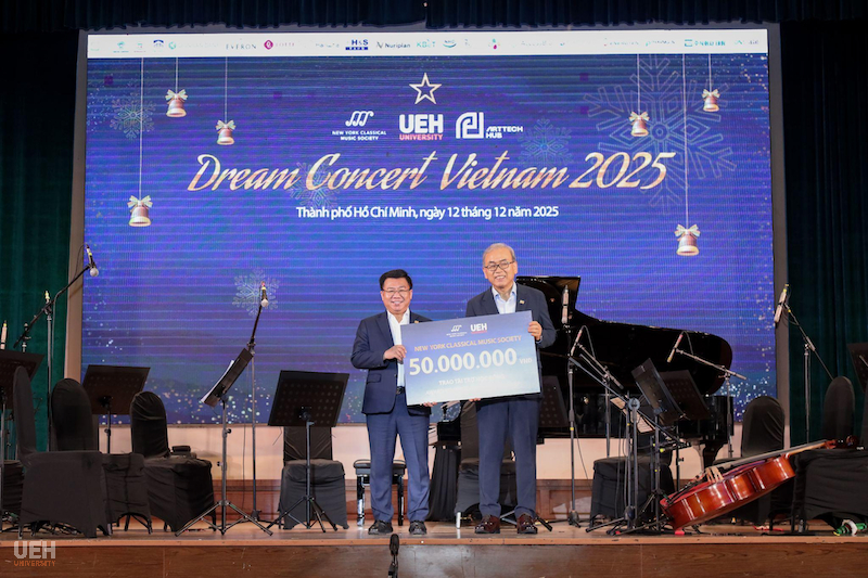 From December 8 to 12, the international classical music concert series "Dream Concert Vietnam 2025" was held with resounding success, attracting over 4,000 attendees across four venues: the University of Transport and Communications in Hanoi, the National Economics University, the HCMC Student Cultural House, and the University of Economics Ho Chi Minh City. The event not only left a deep artistic impression and brought peaceful melodies ahead of the Christmas season but also marked another successful year of collaboration between the University of Economics Ho Chi Minh City (UEH) and the New York Classical Music Society (NYCMS).