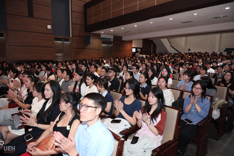 The event was graced by the presence of Mr. Park Jeong-hwan, Defense Attaché at the Embassy of the Republic of Korea in Vietnam, Mr. Bok Deokgyu - Director of Korea Trade-Investment Promotion Agency (KOTRA); Mr. Lee Jae Eun - Chairman & CEO of Everon; and Mr. Kim Han-yong – Former Chairman of the Korean Chamber of Commerce and Industry in Vietnam. From NEU: Assoc. Prof. Dr. Bui Duc Tho - Secretary of the Party Committee - Chairman of the University Council; Assoc. Prof. Dr. Bui Huy Nhuong - Director of the University; and Prof. Dr. Nguyen Thanh Hieu - Vice Director of the University. From UEH leadership: Assoc. Prof. Dr. Bui Quang Hung - UEH Interim President; Prof. Dr. Nguyen Dong Phong - Chairman of the UEH Development Strategy Council; Prof. Dr. Su Dinh Thanh - Chairman of the Science and Training Council; and Assoc. Prof. Dr. Phan Thi Bich Nguyet - Chairwoman of the UEH Alumni Executive Board.