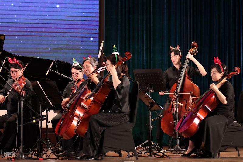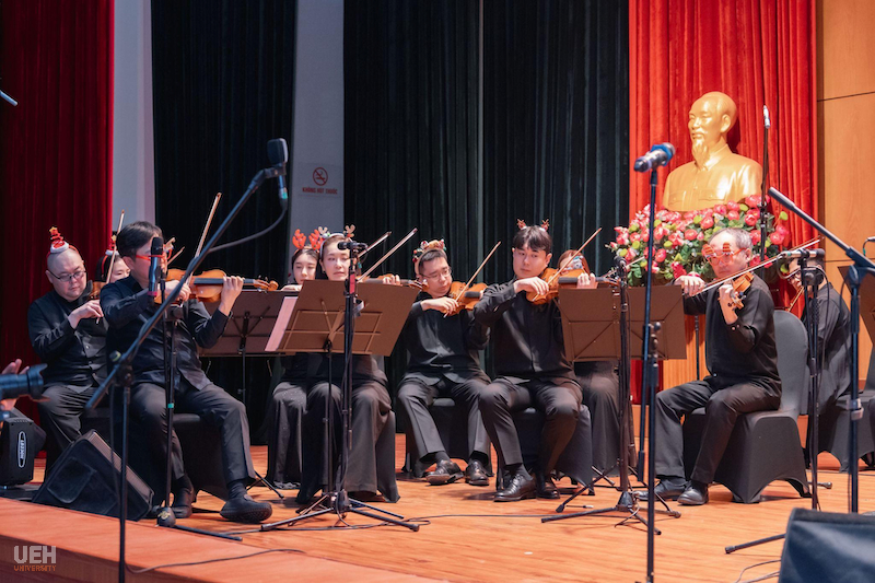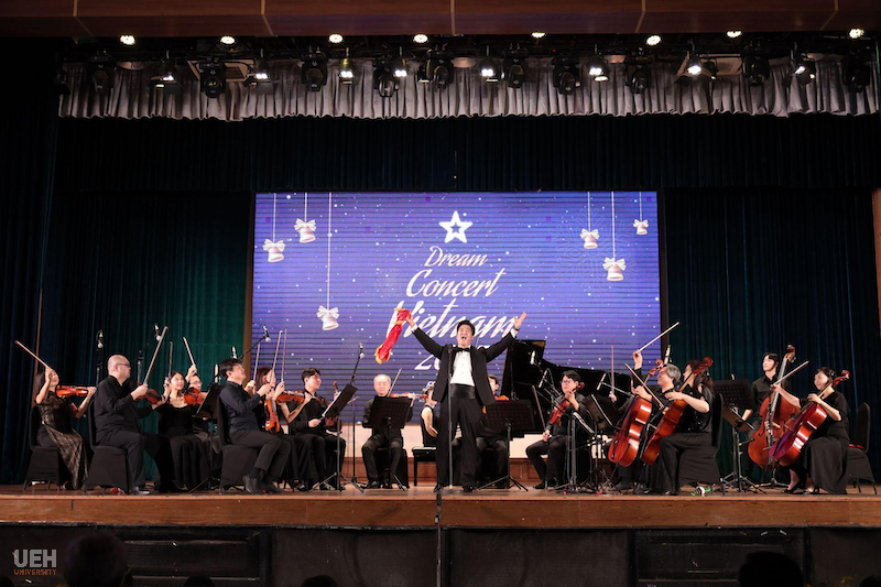 The concert attracted over 1,000 attendees, including faculty, students, alumni, and partners. of UEH, Vietnamese and Korean businesses, and sponsoring enterprises. The program was honored by the attendance of Mr. Kim Kyoo Chul - Chief Executive Officer of the National Housing Organization; Mr. Bae In Han - General Director of Hyosung Group; and Mr. Dang Quoc Bao - Director of Trung Nam Group. From UEH leadership: Prof. Dr. Nguyen Khac Quoc Bao - Chairman of the University Council; Prof. Dr. Su Dinh Thanh - Chairman of the Science and Training Council; and Assoc. Prof. Dr. Phan Thi Bich Nguyet - Chairwoman of the UEH Alumni Executive Board. From the New York Classical Music Society: Dr. Park Young June - Former Vice Minister of the Ministry of Economy and Knowledge of the Republic of Korea, Honorary Rector of UEH College of Technology and Design, Chairman of the Dream Strategic Cultural Exchange Association.