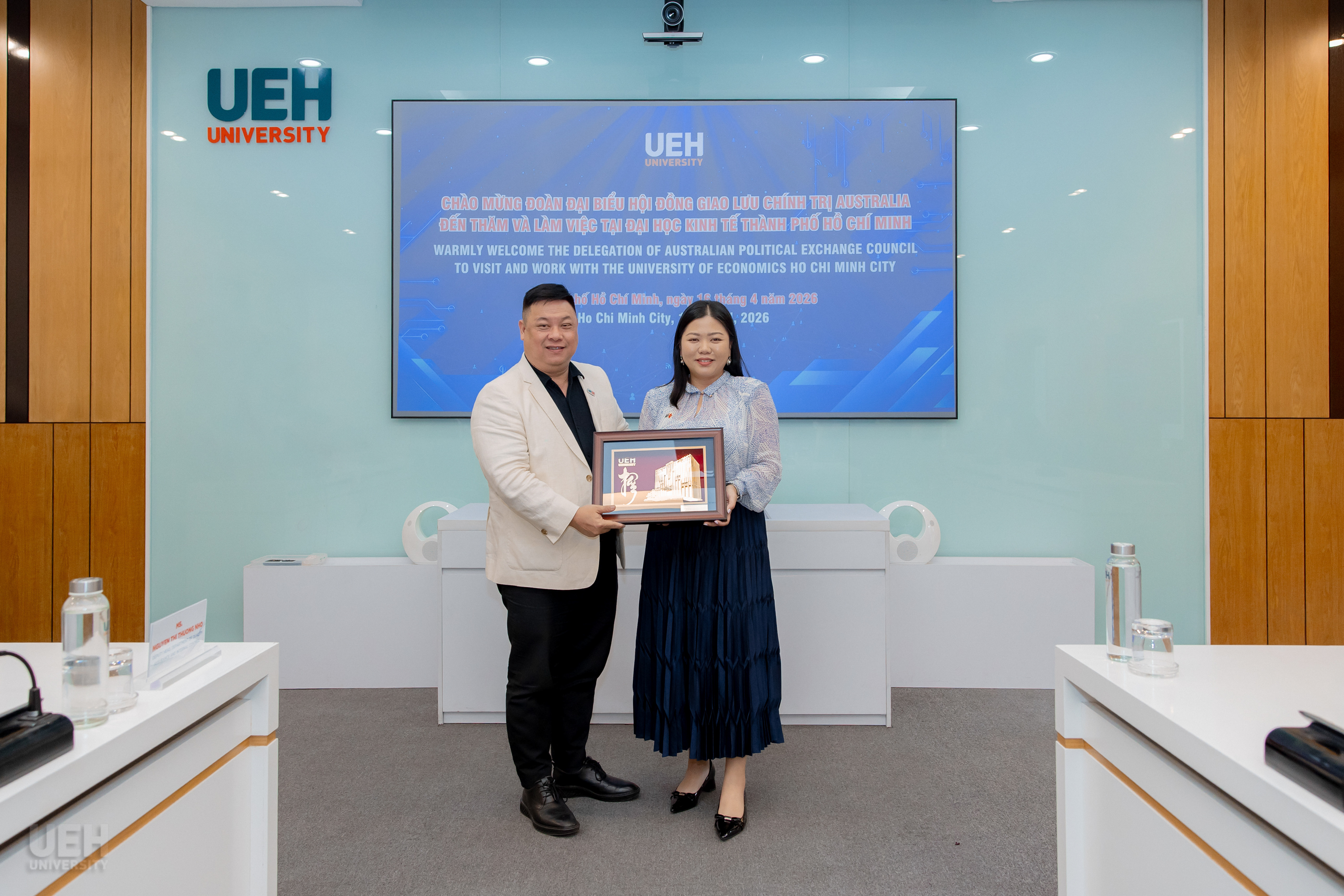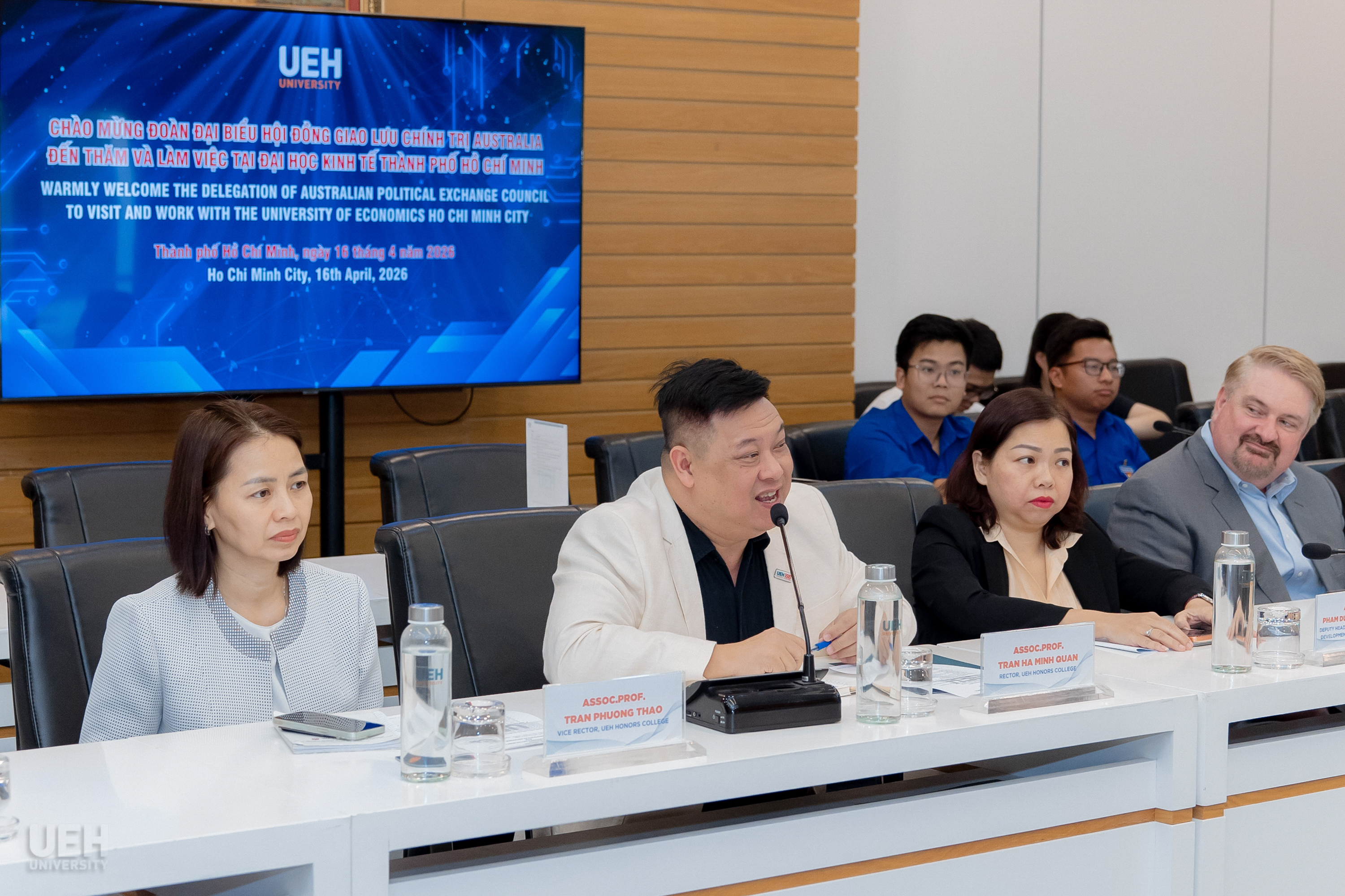 On the afternoon of April 16, 2026, within the framework of their visit and academic exchange, the Delegation of the Australian Political Exchange Council held a working session at Campus A of the University of Economics Ho Chi Minh City (UEH), opening up many prospects for cooperation in the time ahead.