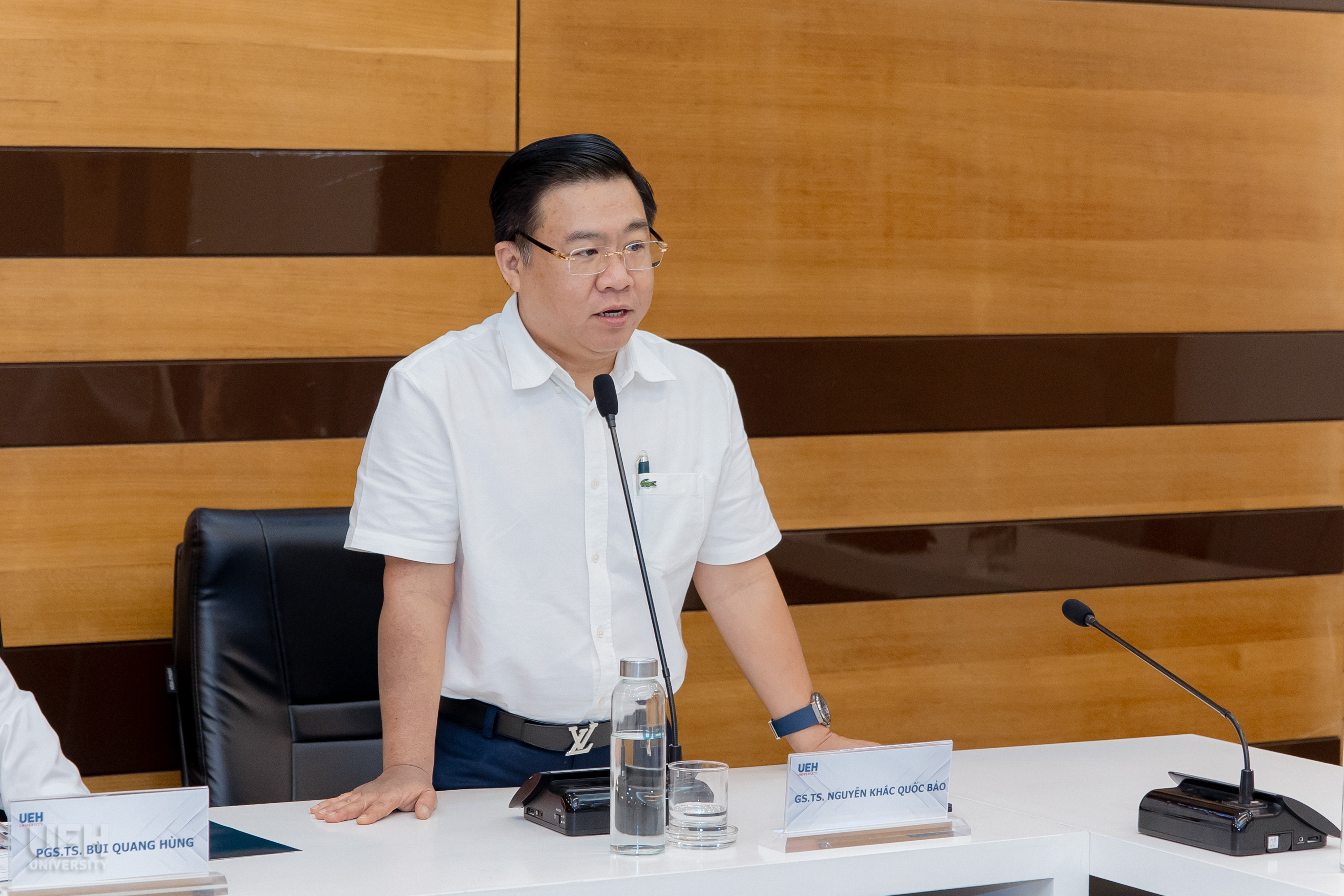 Based on the presented content, the University Council exchanged, discussed and voted to approve the items on the session's agenda, ensuring compliance with regulations and alignment with UEH's overall university governance orientation. With this, the Council completed its mandated duties according to its functions and roles for the term.