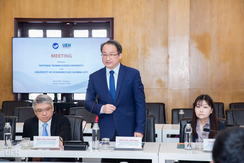 Professor Fan Chia-Ming, representing National Taiwan Ocean University (NTOU), highlighted the university’s strengths in education and scientific research, particularly in the fields of marine science, maritime technology, and sustainable development. With modern facilities and an extensive international cooperation network, NTOU expressed its strong interest in enhancing collaboration with UEH through academic and student exchange programs. Furthermore, NTOU affirmed its readiness to welcome UEH students to study and gain experience in an international academic environment, thereby further strengthening the cooperative relationship between the two universities.