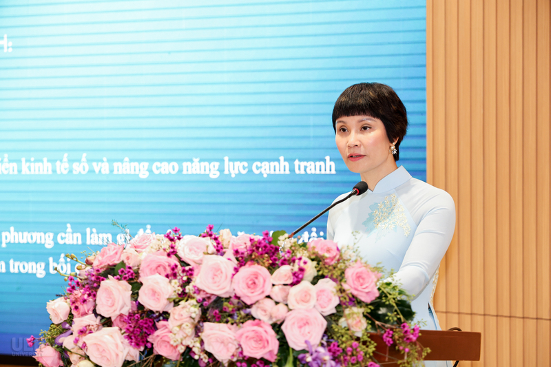 TS. Đỗ Thị Hải Ninh - Giám đốc Chương trình đào tạo Marketing trình độ Đại học, Khoa Kinh doanh quốc tế - Marketing UEH trình bày tham luận: “Vai trò của cơ sở giáo dục đại học trong phát triển kinh tế số nhằm nâng cao năng lực cạnh tranh quốc gia: Kinh nghiệm quốc tế và bài học áp dụng tại UEH”